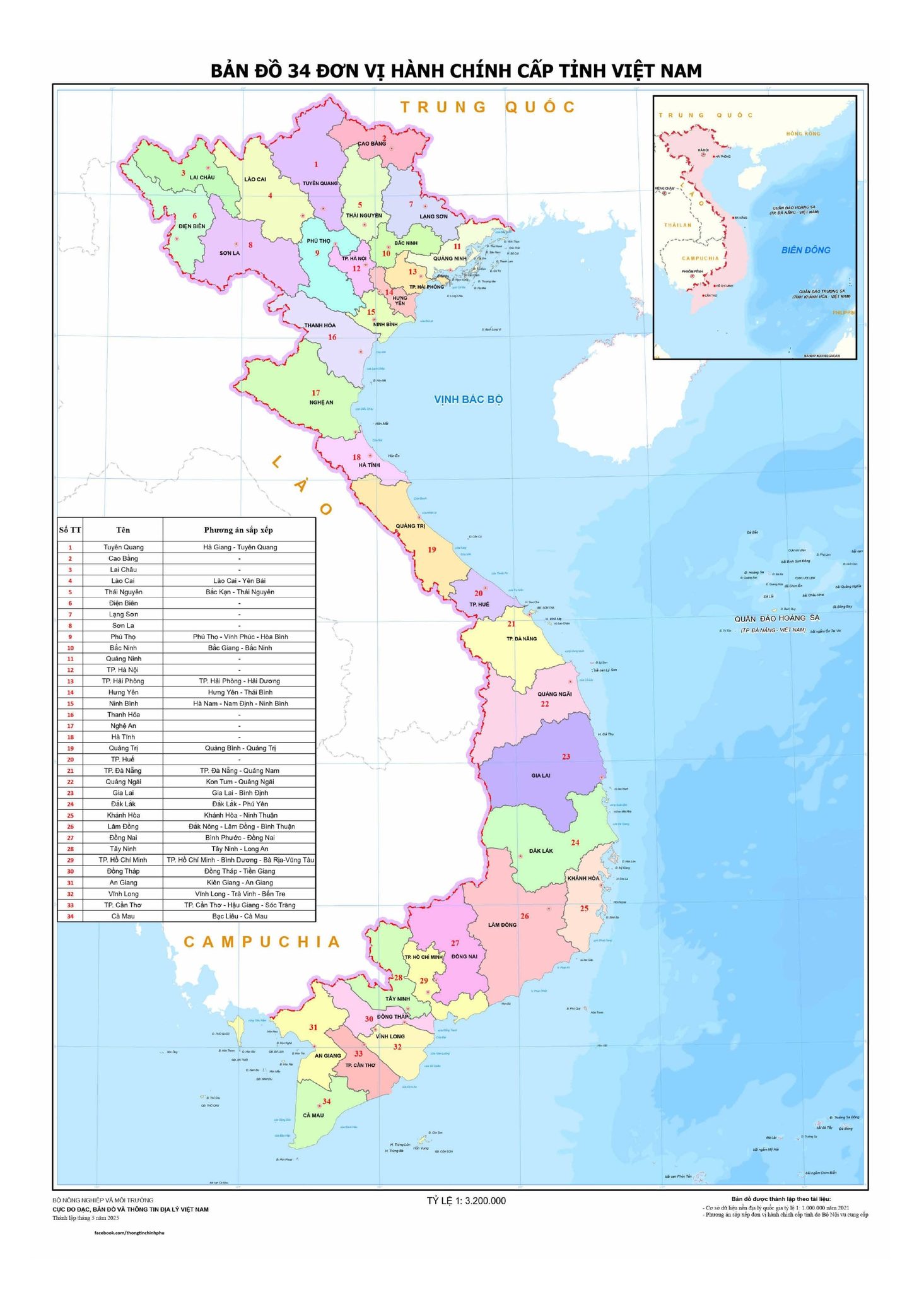 Theo Nghị quyết số 202/2025/QH15 của Quốc hội, sau khi sắp xếp, cả nước có 34 đơn vị hành chính cấp tỉnh, bao gồm 28 tỉnh và 6 thành phố trực thuộc Trung ương. Việc sắp xếp được thực hiện theo hướng hợp nhất toàn bộ diện tích tự nhiên và quy mô dân số của các tỉnh liền kề. Danh sách cụ thể như sau: