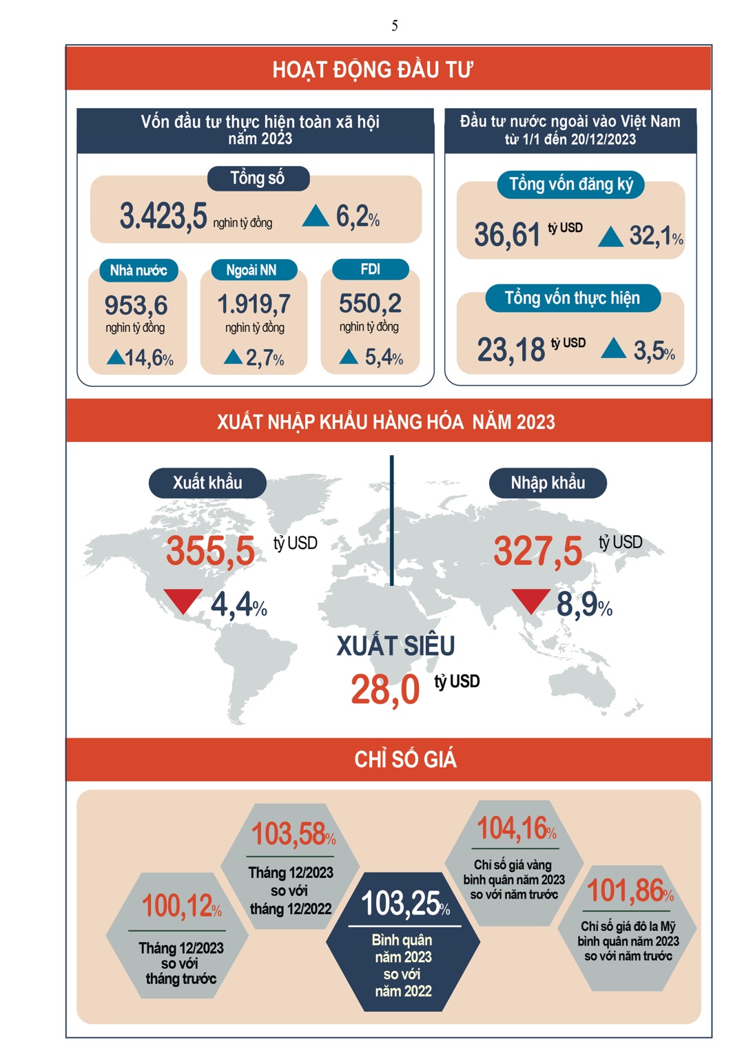 Với các chỉ số trên kinh tế - xã hội Việt Nam 2023 đã đạt được nhiều thành tựu to lớn, vượt qua nhiều khó khăn, làm tiền đề để năm 2024 có sự bứt phá.