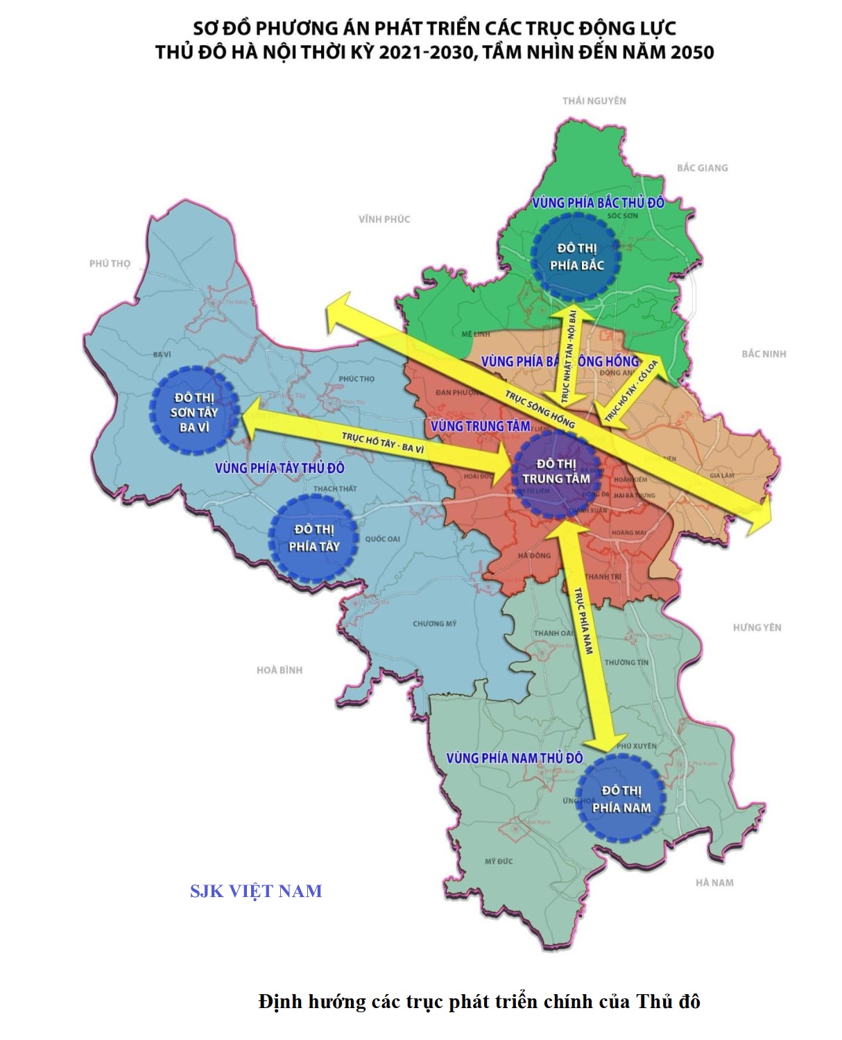 Các trục phát triển của Hà Nội sẽ là các hướng chủ đạo của Hà Nội trong đầu tư trong giai đoạn 2021 – 2030, tầm nhìn đến năm 2050. Các trục đấy là những trục nào?