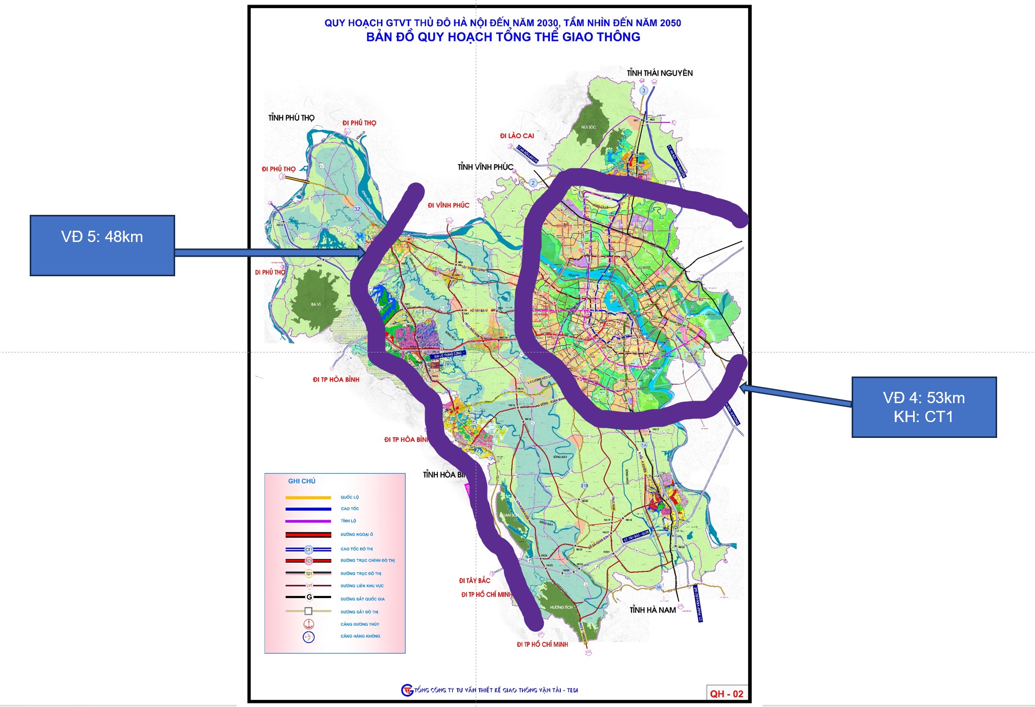 Vành đai 4 và vành đai 5 đi qua Hà Nội