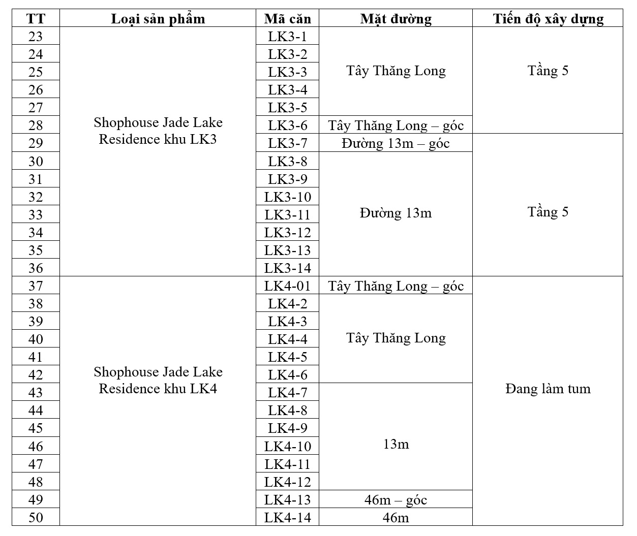 Dự án Jade Lake Residence Tây Thăng Long còn được gọi là khu nhà ở cao cấp Vạn Thuận Tây Thăng Long đang nhận được nhiều sự quan tâm của quý khách hàng. Chúng tôi xin cập nhật tiến độ tính đến ngày 23.4.2025 gửi đến quý khách hàng.