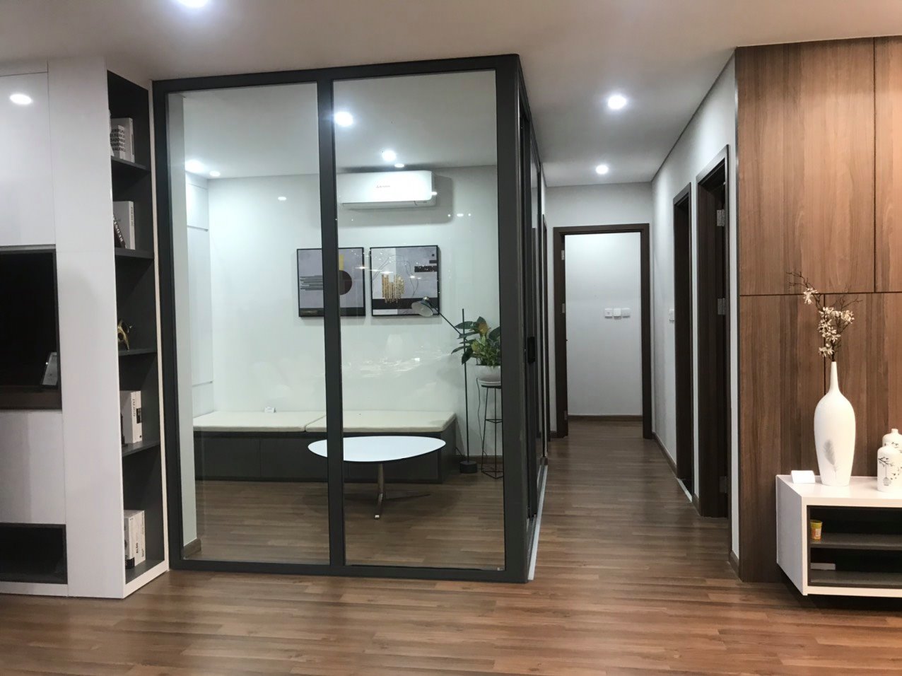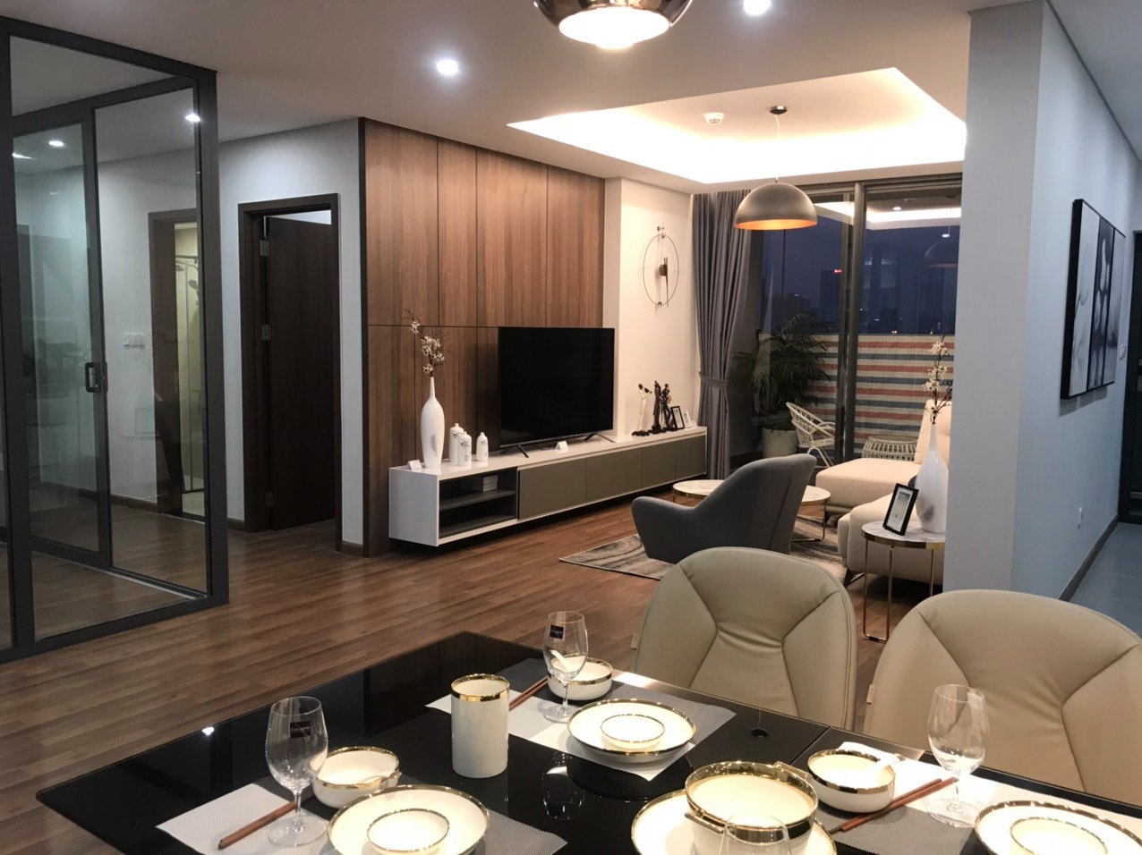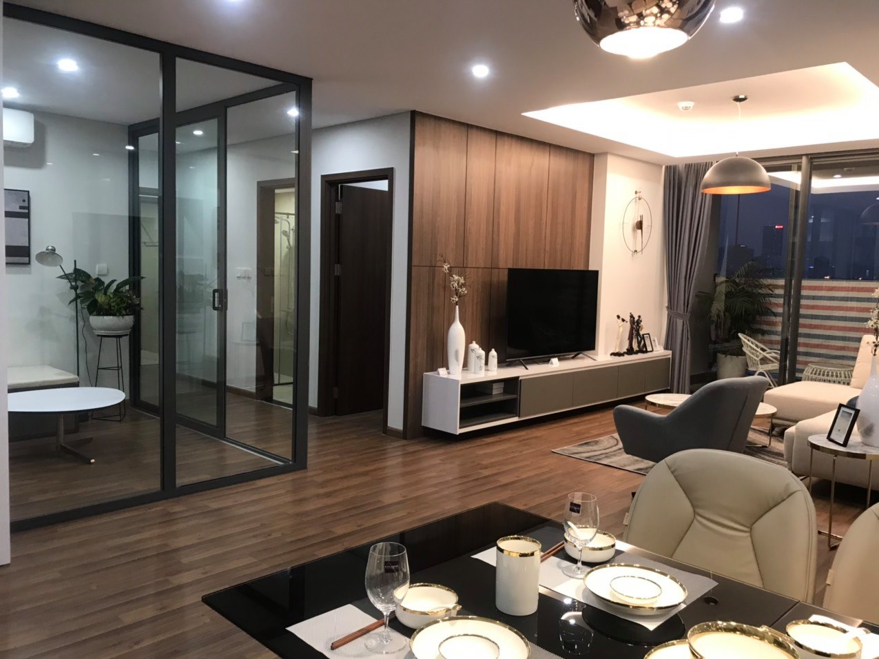 Thiết bị hoàn thiện cao cấp như Điều hòa Multi Mitsubishi 02 chiều, sàn gỗ: Thaigold, cửa gỗ chống cháy An Cường, Cửa kinh Eurowindown, Khoá cửa Hafele, thiết bị vệ sinh: Toto, trần thạch cao, đèn led, thiết bị bếp: để đầu chờ.