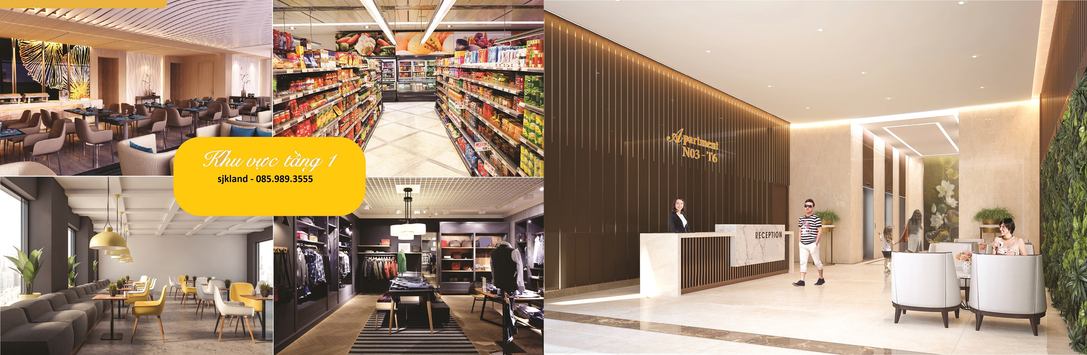 Được bố trí khu vực Lễ tân sang trọng là nơi đón tiếp các cư dân, nhân viên văn phòng và khách mời. Bên cạnh đó là cửa hàng tiện ích, khu vực nhà hàng, cafe cao cấp, siêu thị…. Phục vụ cư dân và cộng đồng trong khu vực.