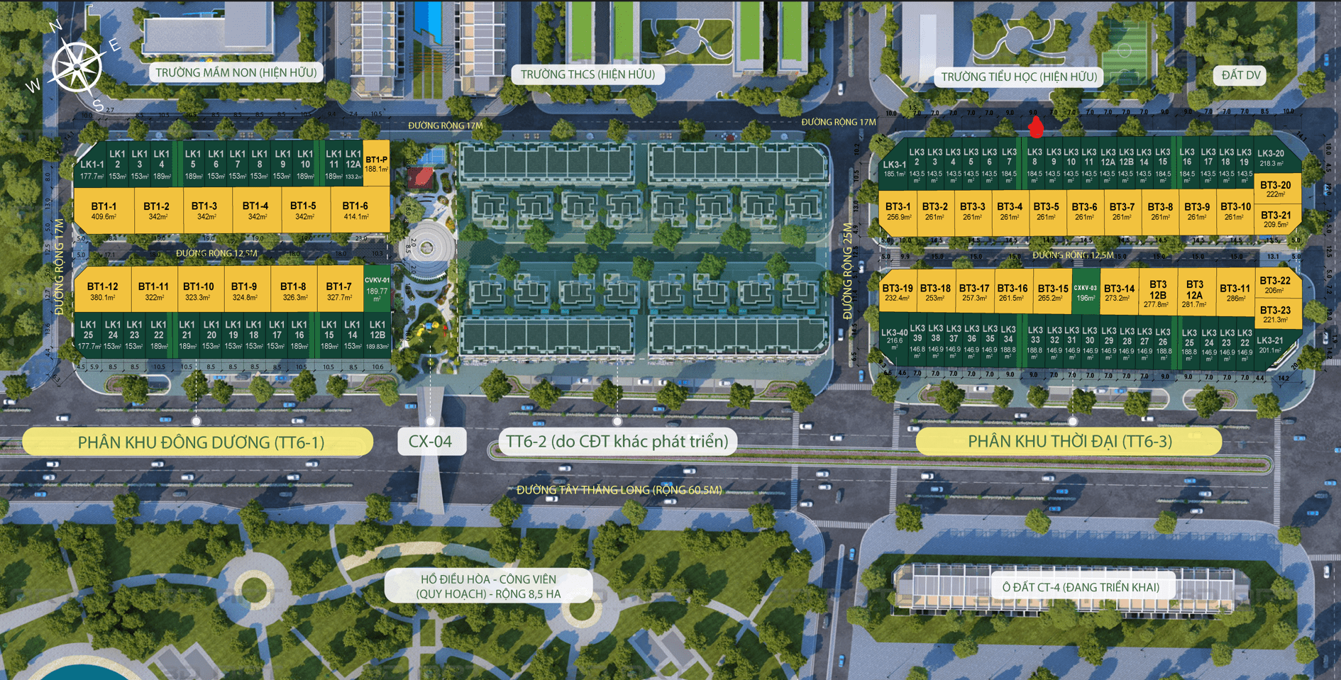- Shophouse LK3-08: gồm 5 tầng nổi + 1 tầng hầm (tổng diện tích sàn sử dụng 655,75m²). Diện tích đất: 184.5 m².