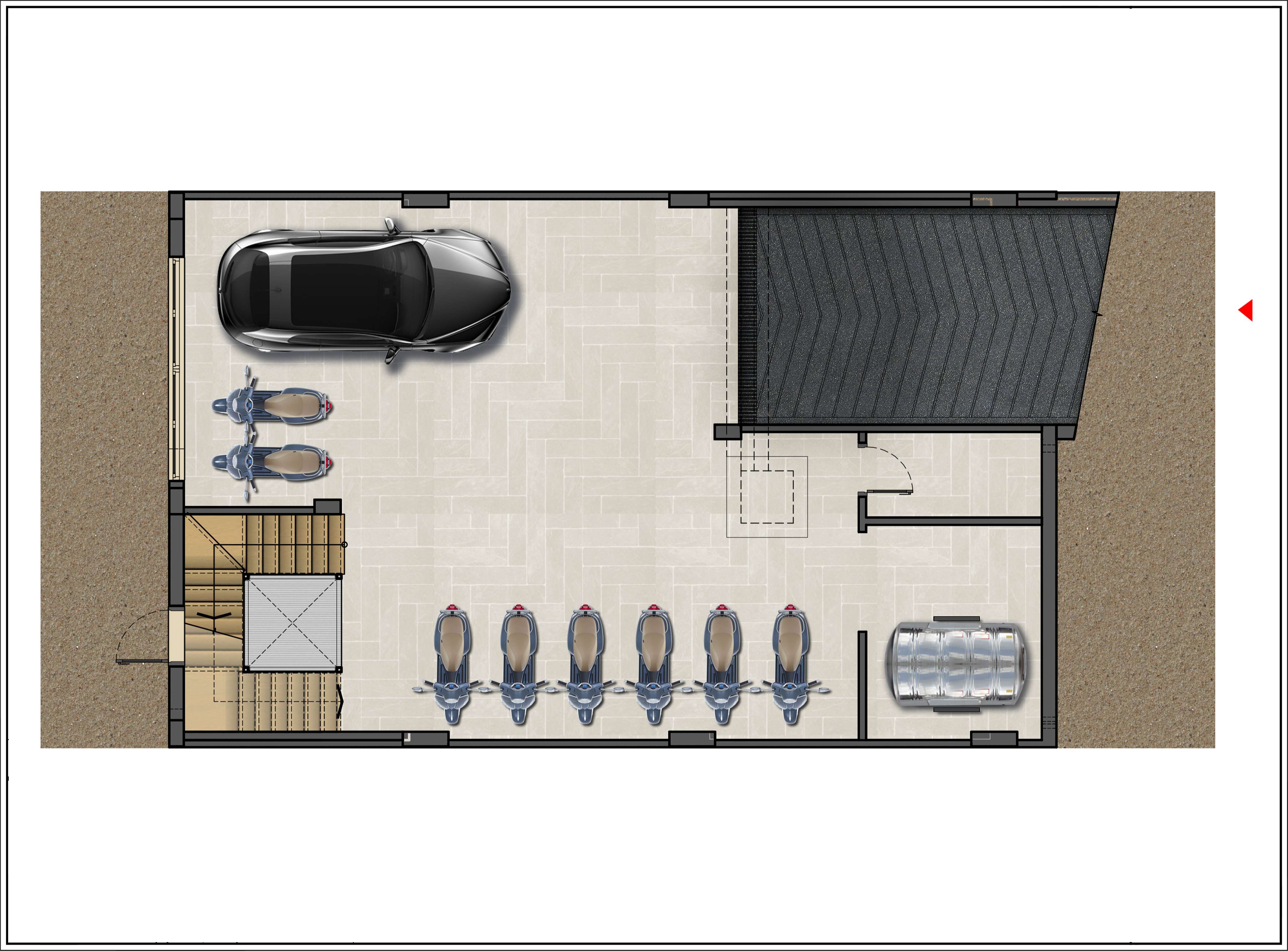 - Diện tích tầng hầm: 115,6m2