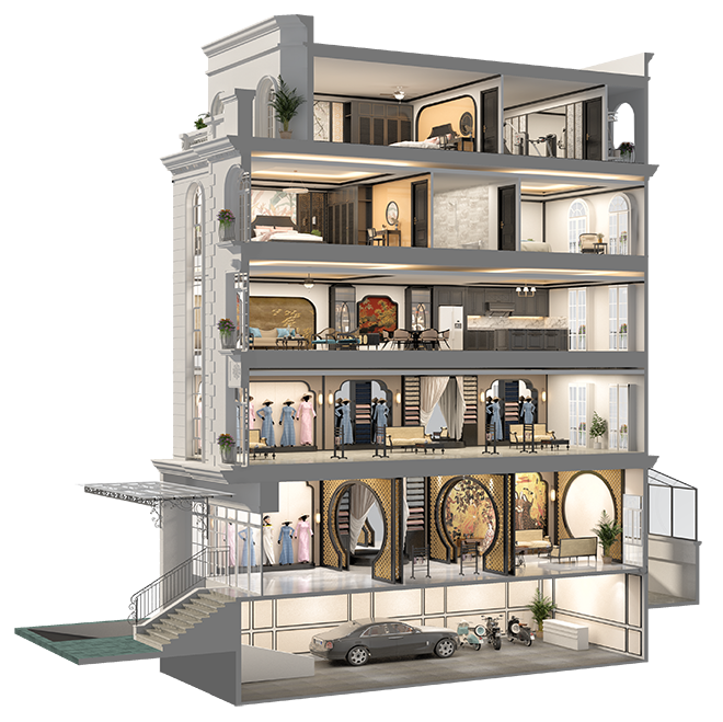 Nhà được xây dựng 05 tầng nổi, 01 tầng hầm.