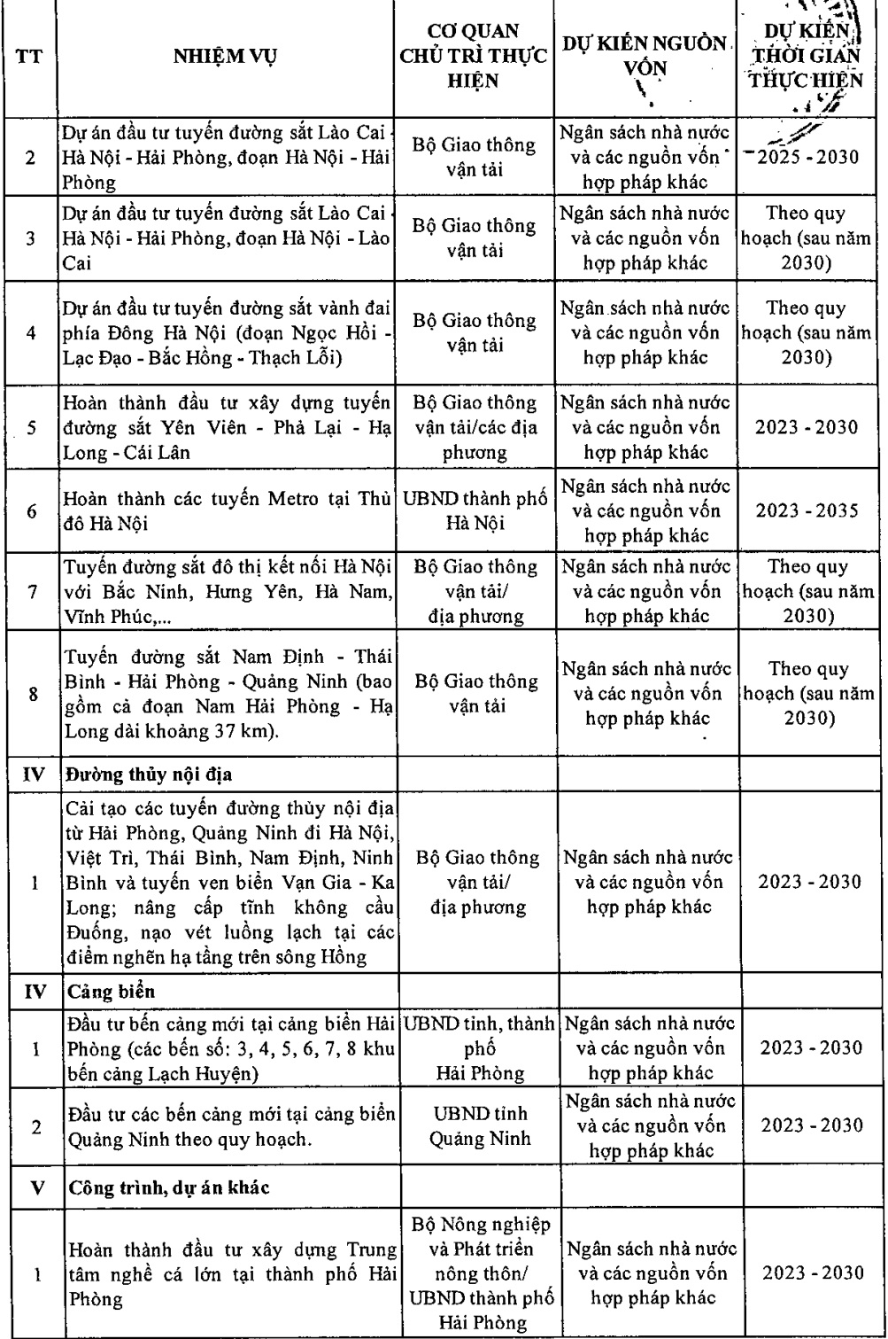 Thủ tướng đề gia 10 nhóm giải pháp yêu cầu các bộ, bộ trưởng các bộ, thủ tưởng cơ quan ngang bộ, cơ quan thuộc chính phủ, các tỉnh, thành trong vùng đồng bằng Sông Hồng tập trung thực hiện như công tác tuyên truyền, thực hiện Nghị quyết, hoàn thiện thể chế, chính sách, phát triển kinh tế vùng, phát triển hệ thống đô thị bền vững và kết cấu hạ tầng kinh tế - xã hội hiện đại, phát triển khoa học – công nghệ, đổi mới sáng tạo, chuyển đổi số, phát triển giáo dục và đào tạo, nâng cao chất lượng nguồn nhân lực, phát triển văn hóa – xã hội nâng cao đời sống nhân dân….