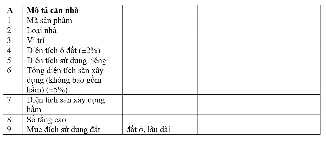 Mô tả căn nhà quý khách hàng sẽ nhận.