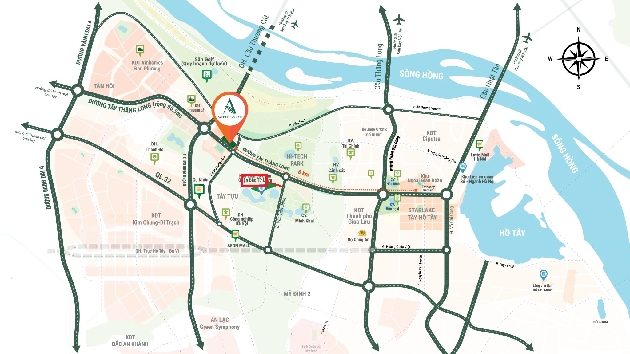 Đường Tây Thăng Long khi đi vào hoạt động sẽ là động lực quan trọng làm thay đổi bộ mặt quận Bắc Từ Liêm, đưa quận này trở thành một trong những khu vực tiềm năng, phát triển bậc nhất Hà Nội. Dự án biệt thự, shophouse Avenue Garden sẽ trở thành một trong những dự án khởi đầu cho sự phát triển phân khúc cao cấp phía Tây của quận.