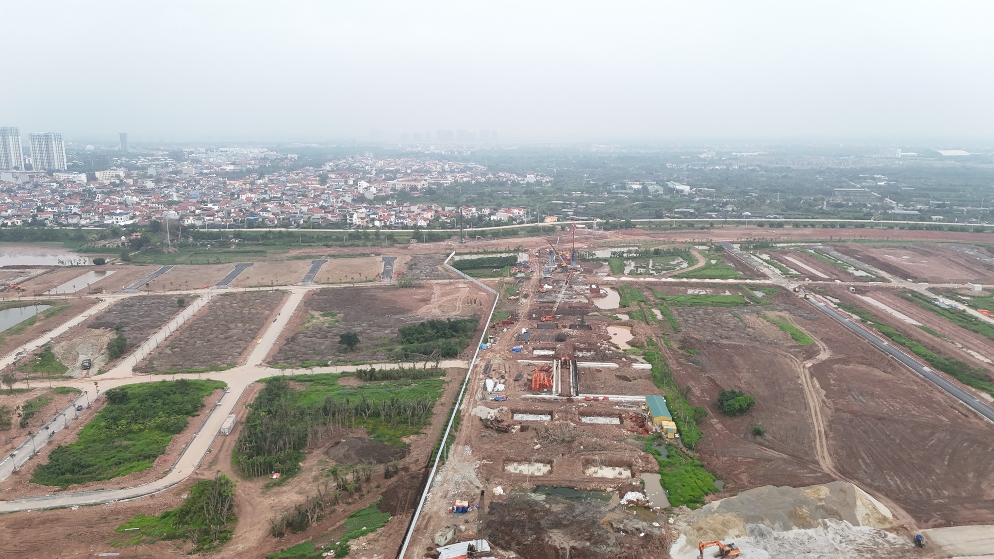 Cầu dẫn, dự án đã khoan 802/2.242 cọc, đúc 11/2220 phiến đầm SuperT và hoàn thành 9/160 bệ trụ. Trong tháng 4.2026, khối lượng thi công dự kiến được nâng lên 950 cọc khoan nhồi, 50 phiến dầm SuperT và 30 bệ trụ. Song song với đó, các mũi thi công mặt bằng đúc dầm và đường công vụ vẫn được duy trì liên tục.