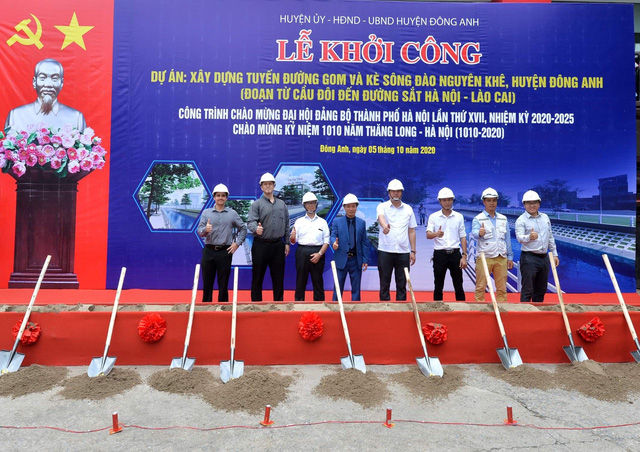 Sáng 5/10, Thành phố. Hà Nội khởi công 3 dự án với tổng mức đầu tư hơn 1.000 tỷ đồng (tuyến đường gom và kè sông đào Nguyên Khê, nhà thi đấu đa năng…) trên địa bàn huyện Đông Anh để chào mừng Đại hội Đảng bộ Thành phố Hà Nội.