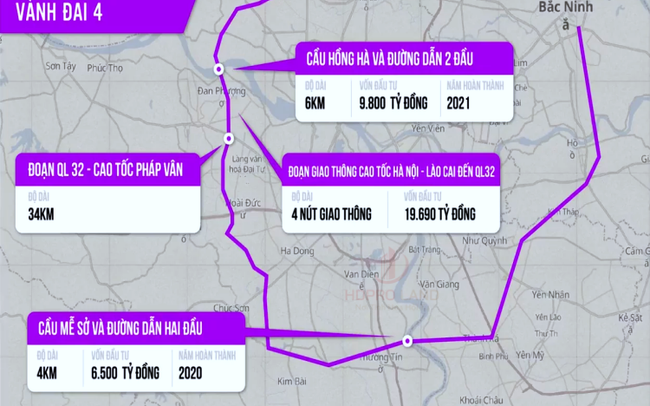 Theo Quyết định số 1278/QĐ-TTg ngày 29/7/2011 của Thủ tướng về phê duyệt QH chi tiết đường Vành đai 4, tuyến đường này chiều dài 98 km, quy mô cao tốc 6 làn xe, kinh phí đt khoảng 66.500 tỷ đồng.