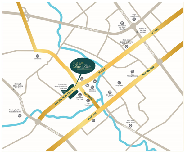 Từ DA Him Lam Vạn Phúc, cư dân có thể di chuyển nhanh đến nhiều địa điểm trọng yếu của Thủ đô nhờ hệ thống giao thông đồng bộ.
