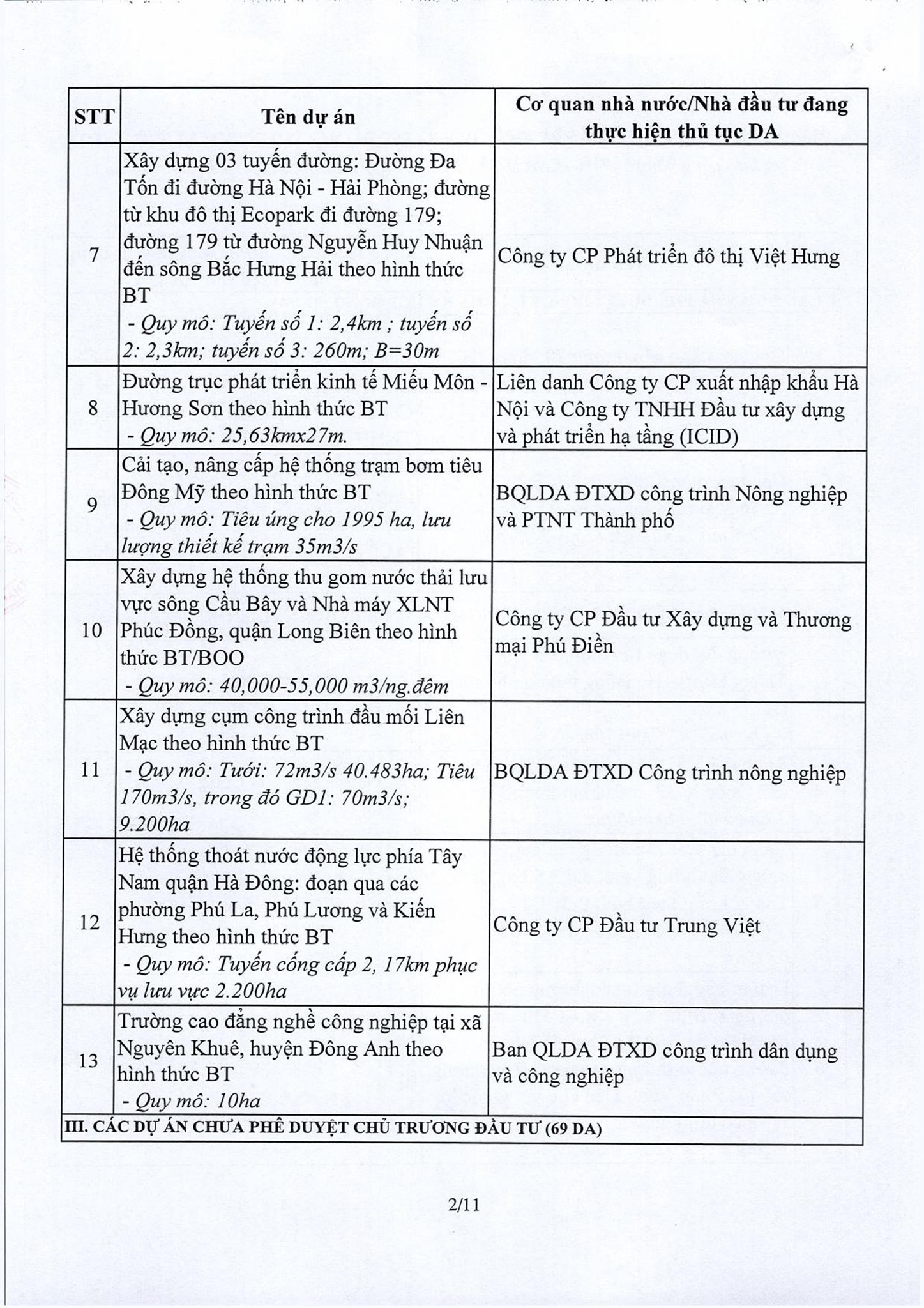 - Dự án chưa phê duyệt chủ trương đầu tư: 69 dự án.