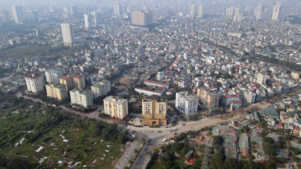 - Các công trình cao tầng bố trí bên ngoài, các công trình thấp tầng bố trí bên trong. Dọc theo tuyến đường phân khu vực có mặt cắt ngang rộng 30m bố trí các công trình nhà ở cao 9 tầng (kết hợp dịch vụ tầng 1), kết hợp với khối nhà cao từ 2-11 tầng tại vị trí ngã 3 đường, tạo thành quần thể kiến trúc hài hoà, phù hợp với yêu cầu của quy hoạch khu vực.