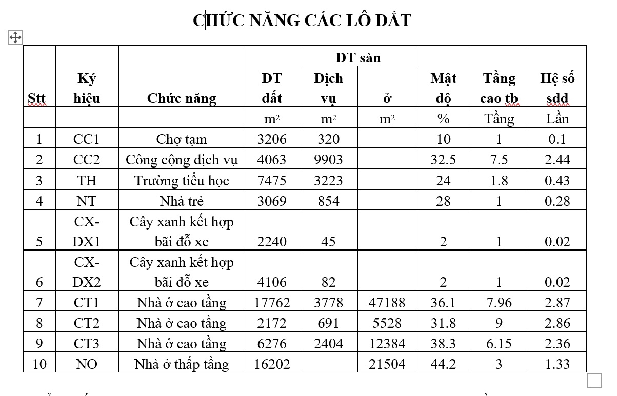 Đất công cộng đơn vị ở: 7.269m2 chiếm 7,24%.