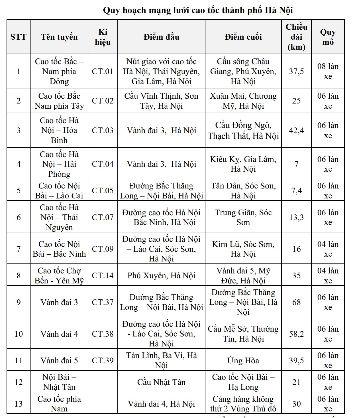 Đường cao tốc Hà Nội đóng vai trò là trục giao thông đối ngoại của Thủ đô, là sự khởi đầu mạng lưới giao thông Hà Nội. Tổng có 13 tuyến được quy hoạch đến năm 2030.