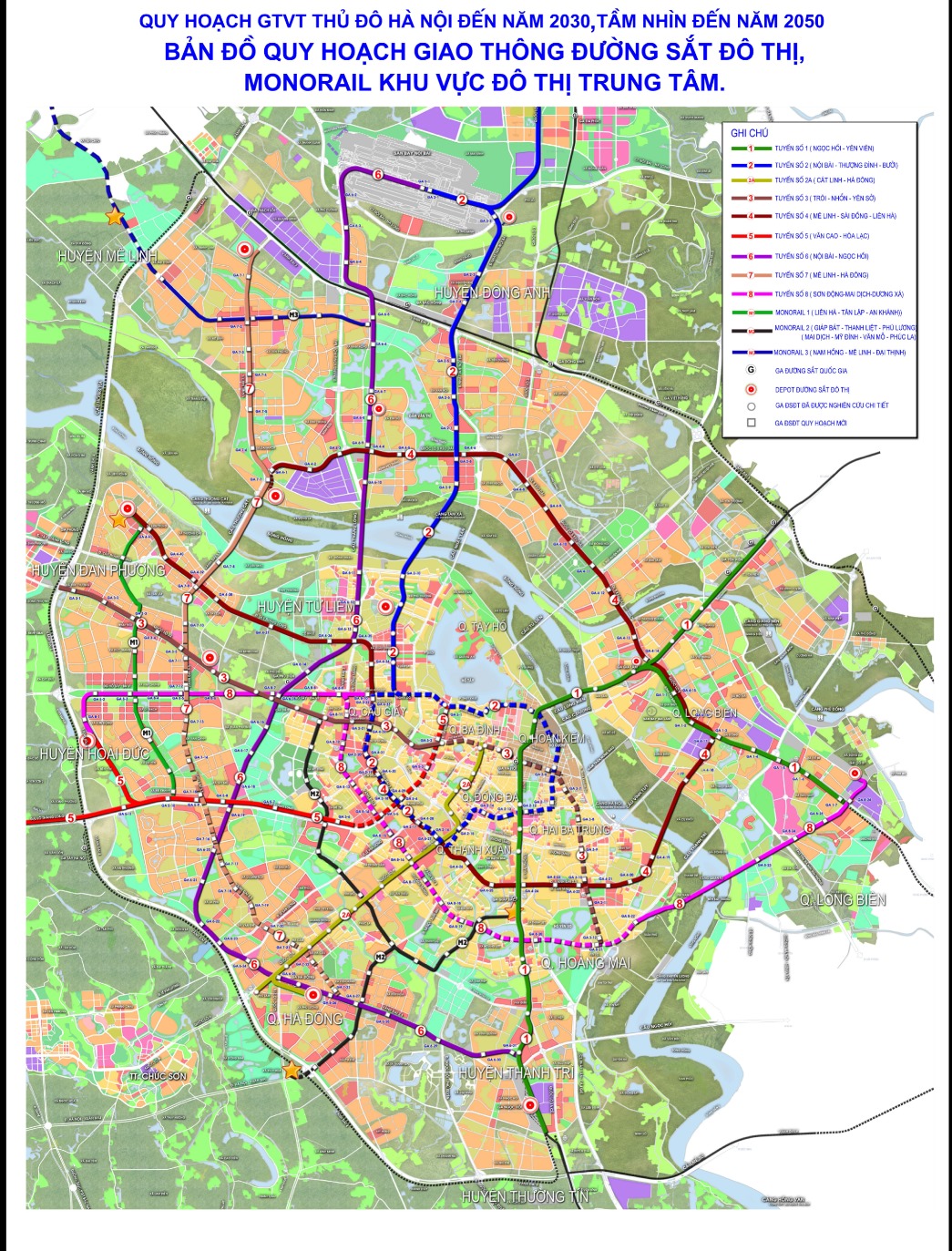 - Đô thị trung tâm xây dựng 8 tuyến (ĐSĐT) theo các giai đoạn. Kết hợp xây dựng công trình dịch vụ, công cộng với xây dựng các ga (ĐSĐT).