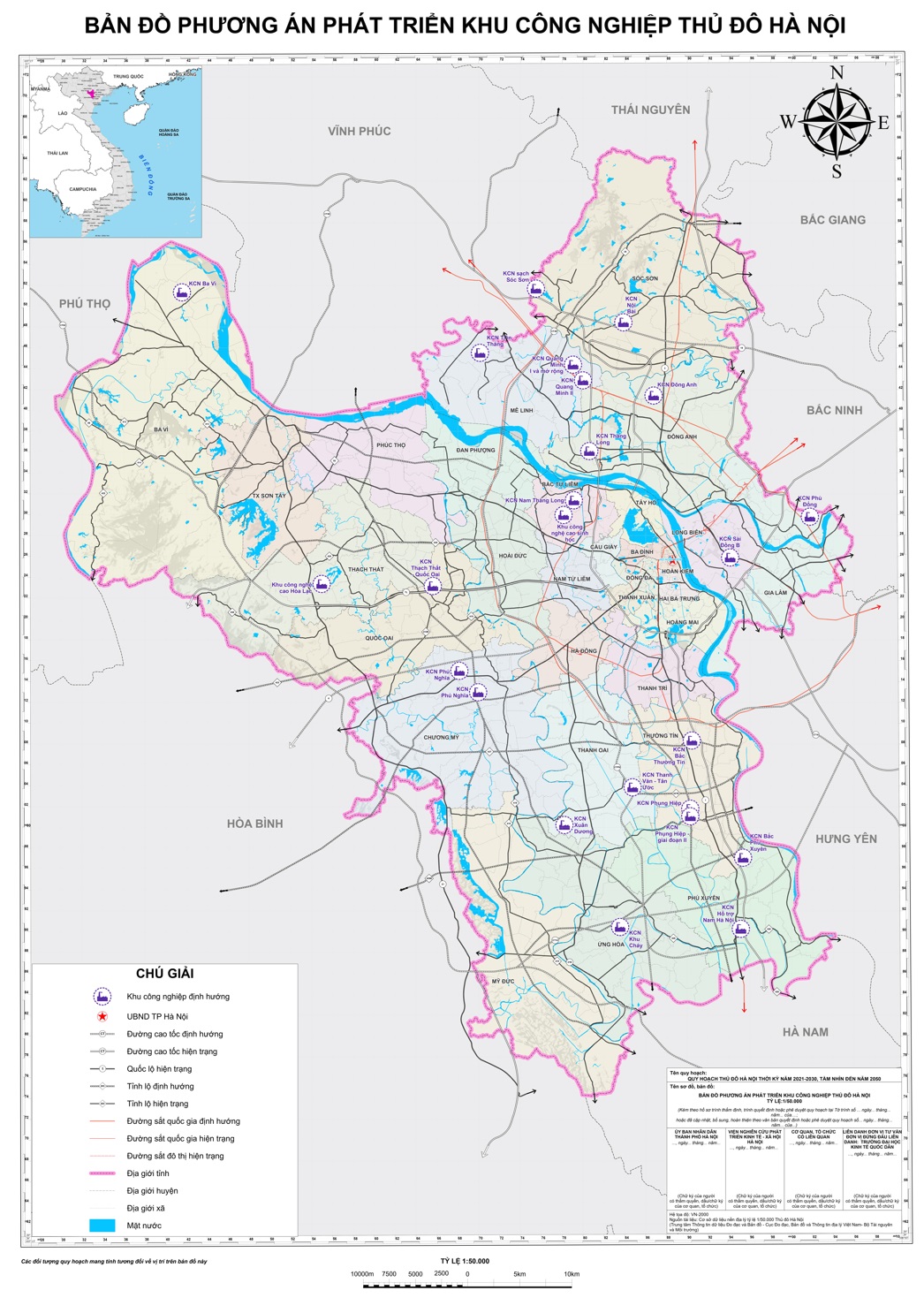 - Thời kỳ 2021 – 2050: quy hoạch, mở rộng 23 KCN, diện tích 5.594 ha. Ổn định các doanh nghiệp sản xuất trong KCN. Khuyến khích và tạo điều kiện cho doanh nghiệp, cơ sở công nghiệp đầu tư nâng cấp máy móc thiết bị và công nghệ để nâng cao hiệu quả sản xuất và chất lượng sản phẩm đáp ứng nhu cầu thị trường. Tiếp tục hoàn thiện hạ tầng các khu công nghiệp đã thành lập giai đoạn trước năm 2030; thu hút lấp đầy diện tích đất công nghiệp của giai đoạn trước; ổn định hoạt động sản xuất kinh doanh của các doanh nghiệp. Rà soát, xử lý các dự án chậm tiến độ, dự án hoạt động không hiệu quả để thu hồi đất, tạo quỹ đất tiếp tục thu hút đầu tư các dự án có hiệu quả. Thành lập mới và mở rộng thêm một số khu công nghieeoj đã có trong quy hoạch đáp ứng nhu cầu đầu tư phát triển sản xuất của nhà đầu tư và doanh nghiệp trên địa bàn các đại phương. Đến năm 2050, cơ bản các KCN của thủ đô được xây dựng và chuyển theo mô hình KCN sinh thái. Phát triển một số khu vực KCN công nghệ cao gắn với xây dựng đô thị khởi nghiệp sáng tạo.