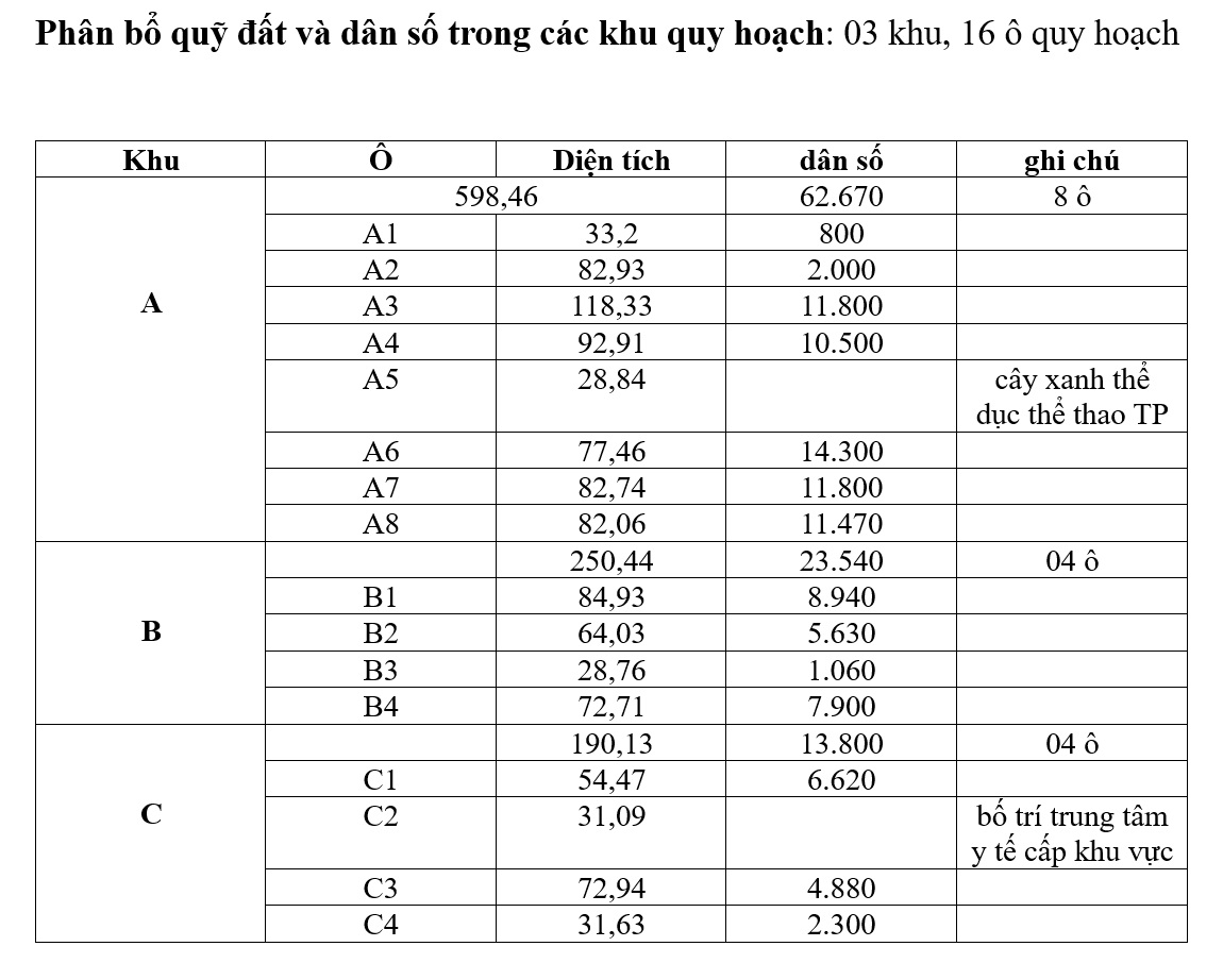 Cơ cấu quy hoạch: