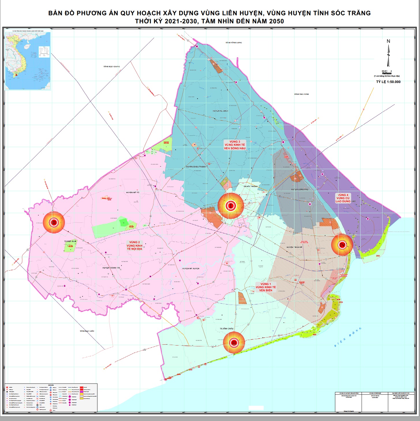 + Về huyện Long Phú: là vùng phát triển tổng hợp công nghiệp, thương mại, dịch vụ, du lịch, đô thị, logistics và nông – ngư nghiệp gắn với lợi thế là điểm giam thương giữa hành lang kinh tế quốc lộ 91B và hành lang kinh tế quốc lọ 60. Đầu tư hoàn thiện, phát triển các khu, cụm công nghiệp theo định hướng phát triển công nghiệp của tỉnh, hoàn thành xây dựng nahf máy Nhiệt điện Long Phú 1; chú trọng phát triển nông nghiệp, hình thành các vùng trồng lúa tập trung chất lượng cao, lúa thơm, đặc sản; phát triển vùng trồng cây ăn trái, vùng chăn nuôi gia súc, gia cầm tập trung.