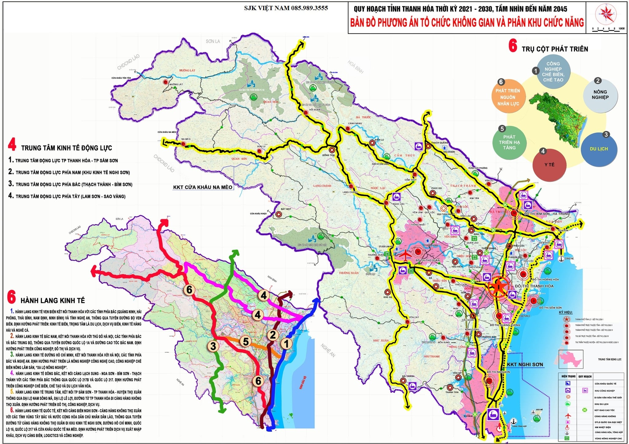 Thanh Hóa có 04 trung tâm kinh tế động lực gồm: Khu kinh tế Nghi Sơn, Tp Thanh Hóa, Sầm Sơn, Lam Sơn – Sao Vàng, Bỉm Sơn – Thạch Thành; 06 hành lang kinh tế: hành lang kinh tế ven biển – theo quốc lộ biển, QL10, hành lang kinh tế Bắc Nam – theo QL1A, cao tốc Bắc Nam, hành lang kinh tế Trung Tâm – Sầm Sơn, TP Thanh Hóa, Thọ Xuân, hành lang kinh tế quốc tế Nghi Sơn – Thọ Xuân – Na Mèo, hành lang kinh tế đường Hồ Chí Minh – xa lộ Nông nghiệp, hành lang kinh tế Đông Bắc – Lạch Sung, Nga Sơn, Bỉm Sơn, Thạch Thành.