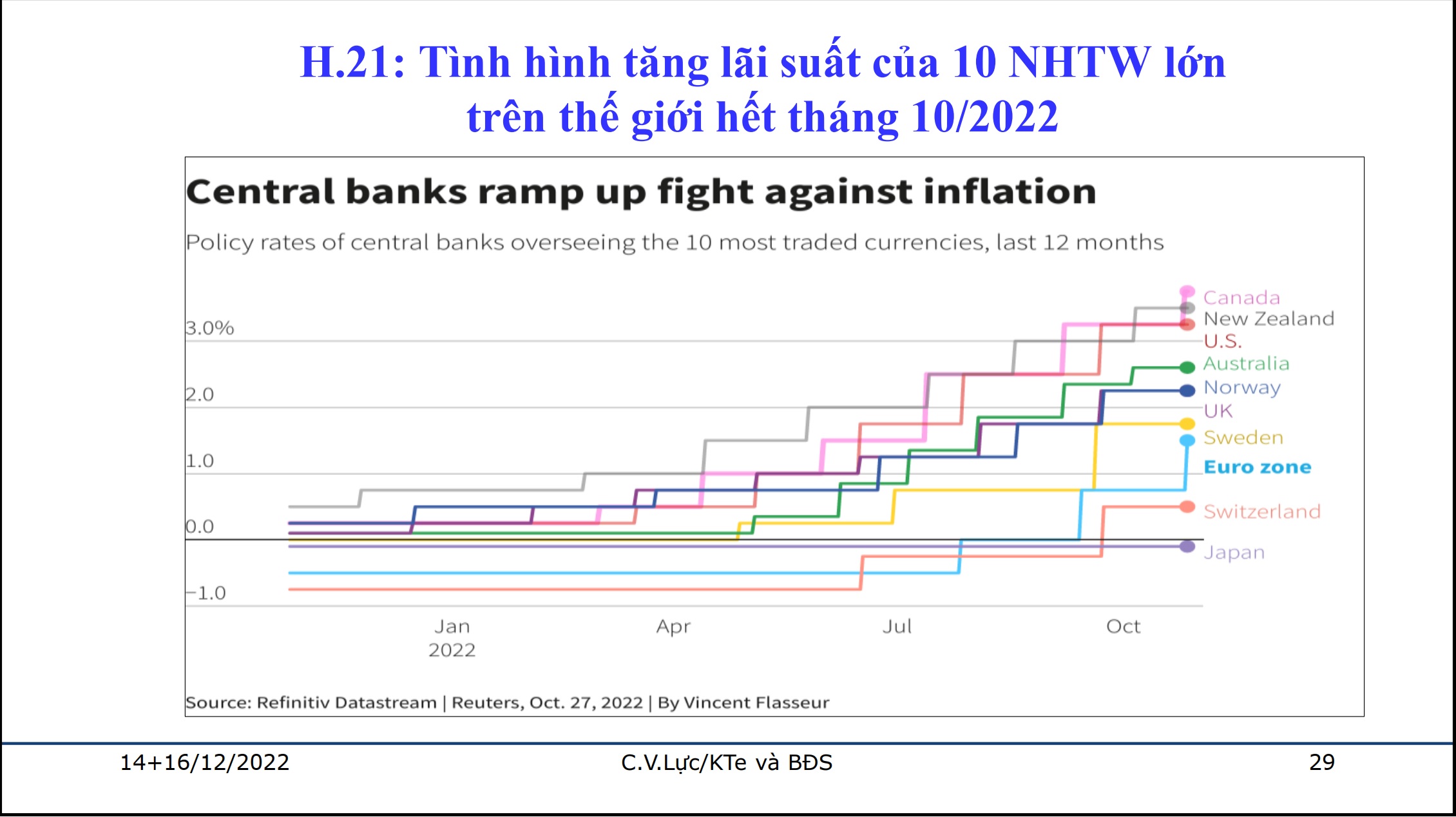 Lạm phát tăng cao và kéo dài đã đưa kinh tế thế giới và mỗi nước đến bên bờ vực nguy hiểm của sự đổ vỡ. Các chính phủ và các thể chế tài chính đã phải hành động để kiềm chế sự lạm phát đó lại, một trong những công cụ hữu hiệu được sử dụng là lãi suất. Xuất phát từ các nền kinh tế lớn đặc biệt là Mỹ điều chỉnh lãi suất đồng USD tăng, làm các nước khác đều phải tăng theo. Tác động của lãi suất như thế nào?