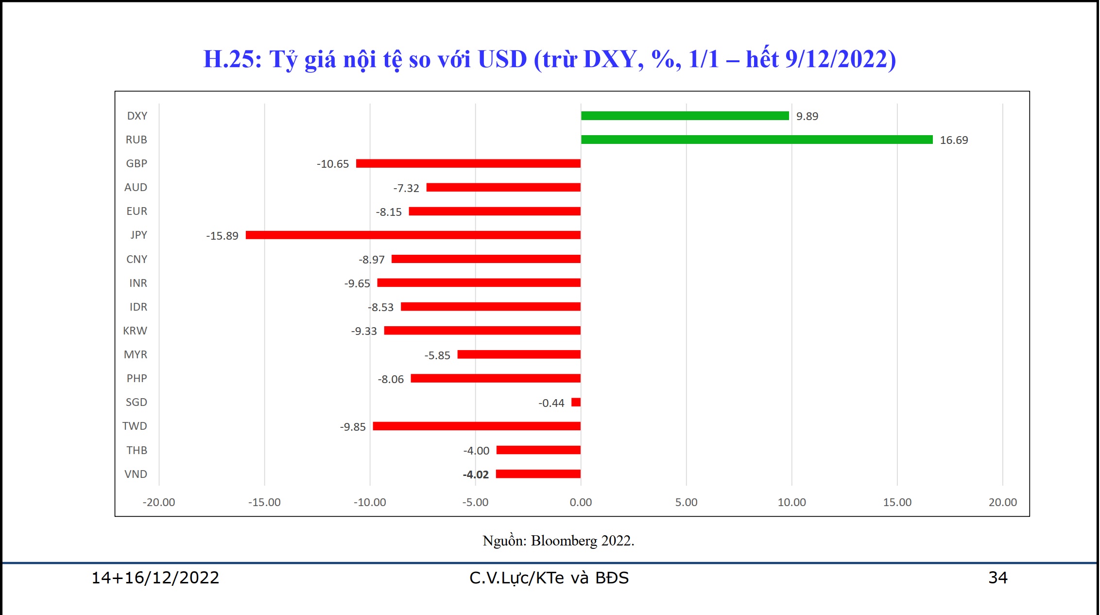 Thứ hai: USD tăng giá mạnh dẫn đến rủi ro tỷ giá. Khi lãi suất USD tăng, giá trị của USD tăng giá mạnh, nghĩa là đồng tiền nội địa bị mất giá. Tính đến cuối tháng 10/2022, đồng VNĐ đã giảm giá 8,6% so với USD, ảnh hưởng nặng nền đến hoạt động xuất nhập khẩu hoặc vay nợ.