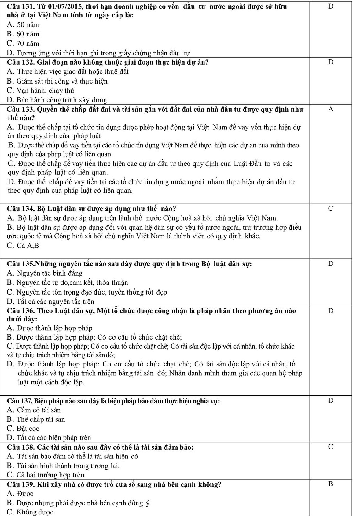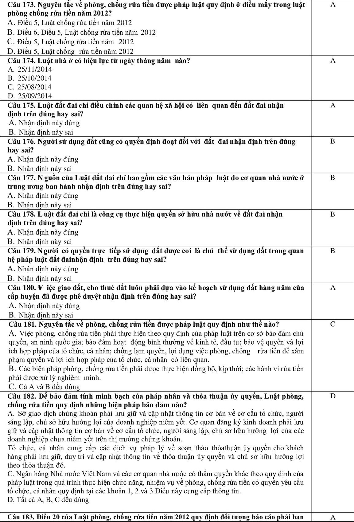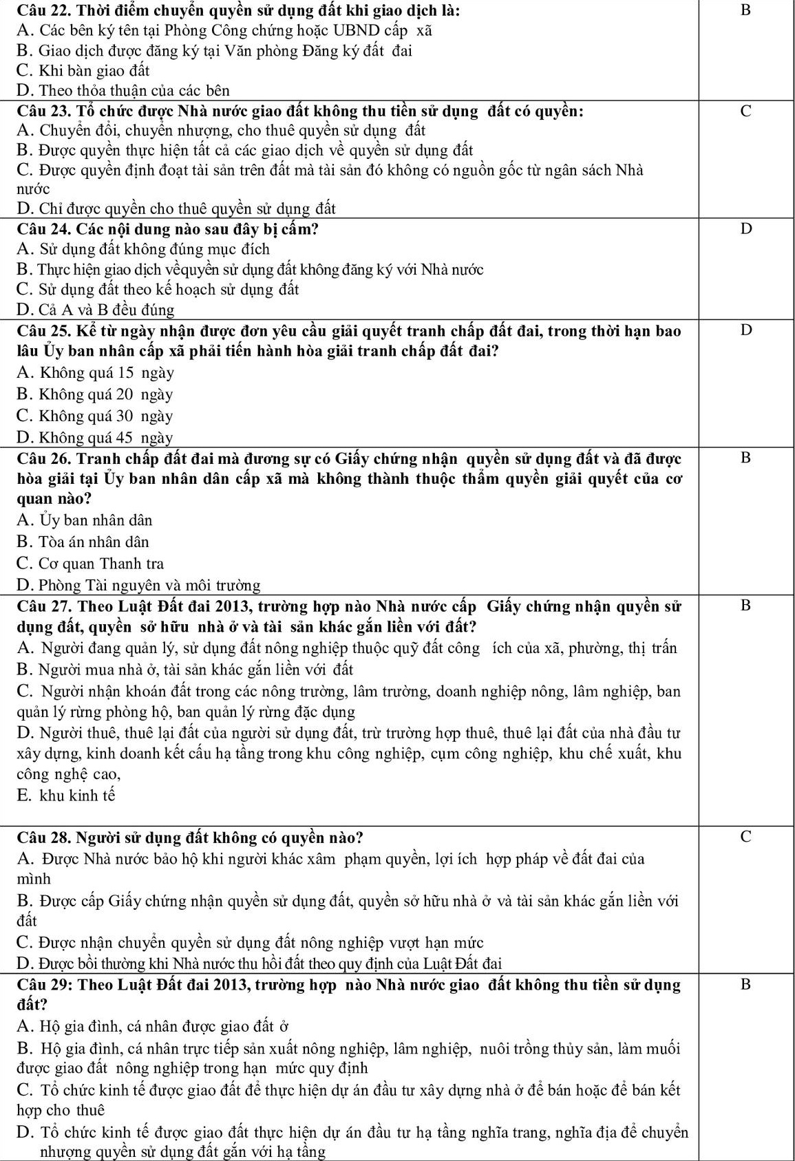 Câu 5. Luật đất đai 2013 có hiệu lực ngày nào? A. 01/01/2014 B. 01/07/2014 C. 01/11/2014 D. 01/05/2014 |