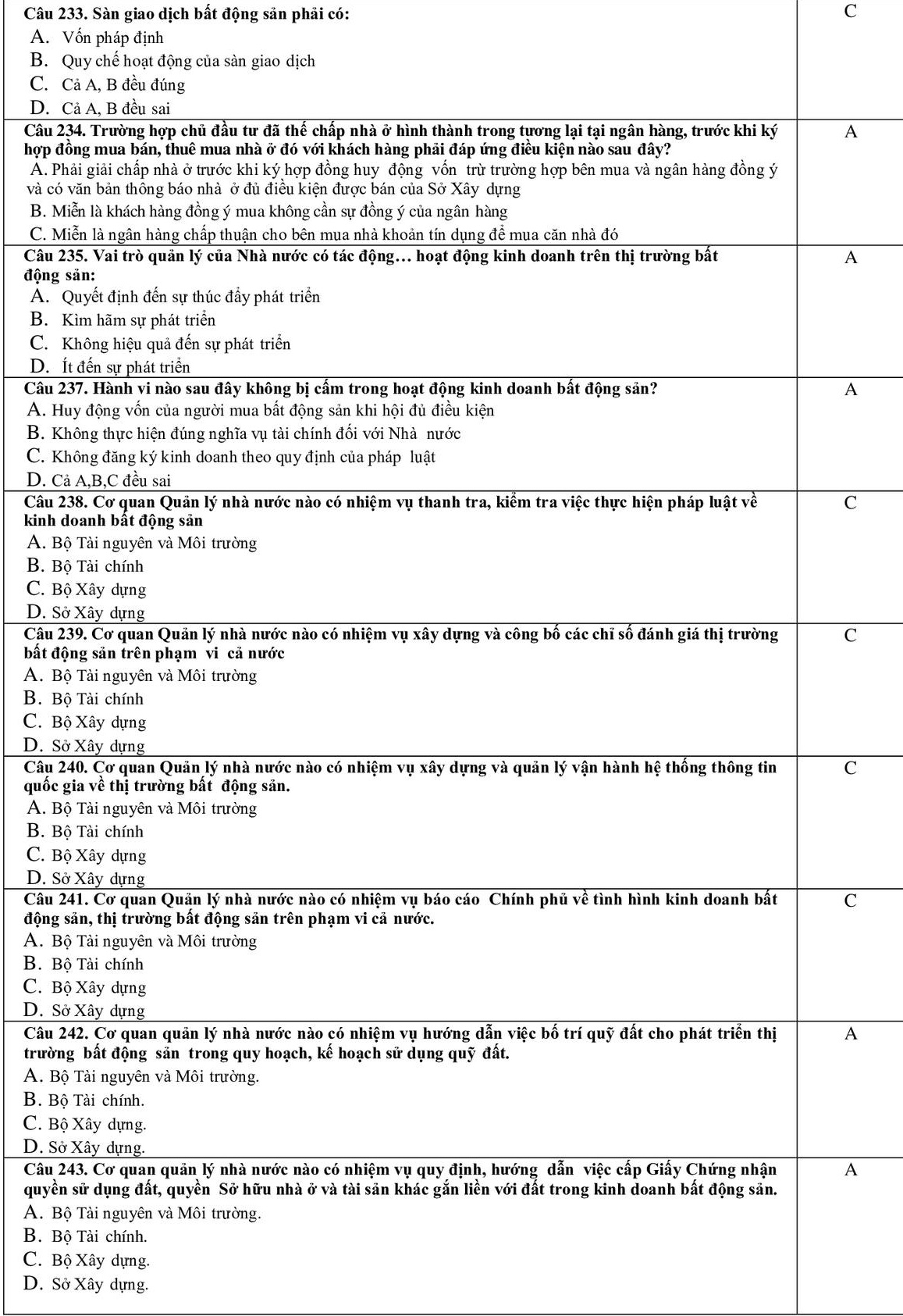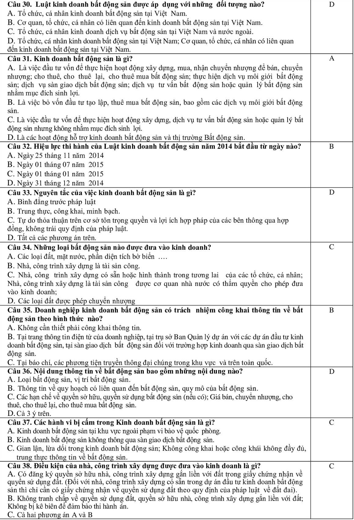 KIẾN THỨC CƠ SỞ ÔN THI CHỨNG CHỈ MÔI GIỚI BẤT ĐỘNG SẢN