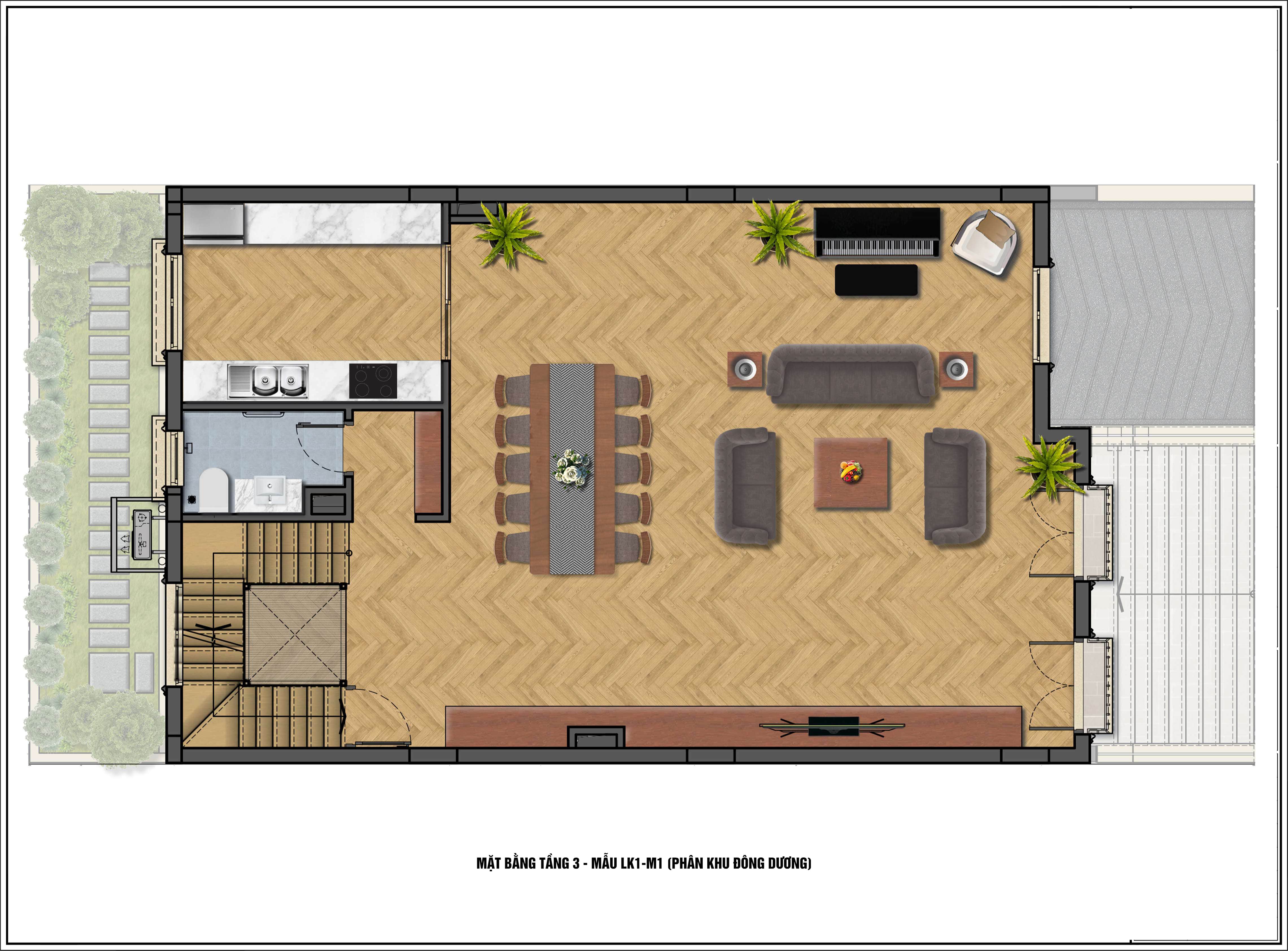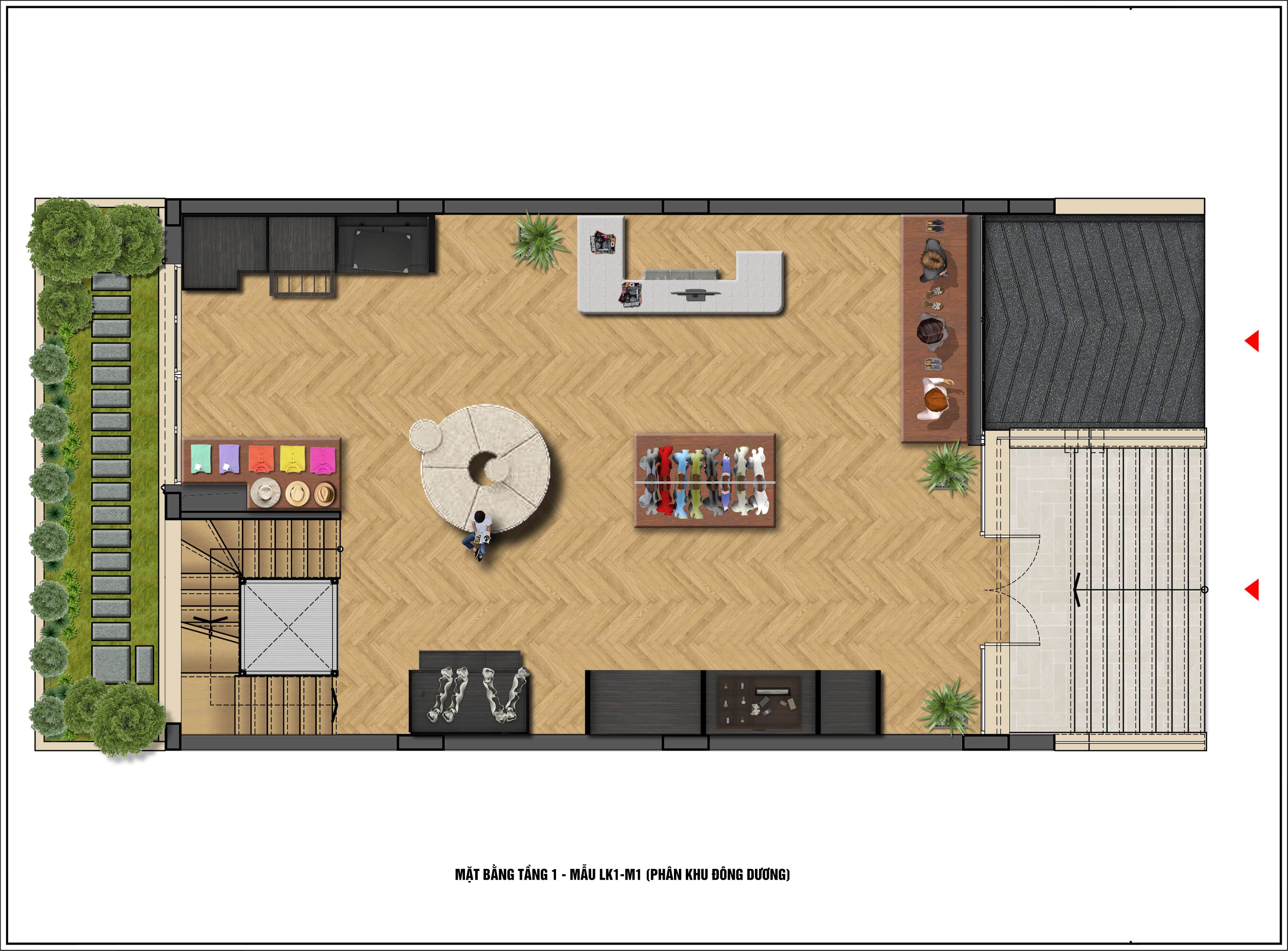 LK1-1 là căn góc tiếp cận được với nhiều tiện ích, hạ tầng xã hội của khu đô thị như trường mầm non, công viên, bãi đỗ xe, liên kết với các khu thương mại khác trong khu.