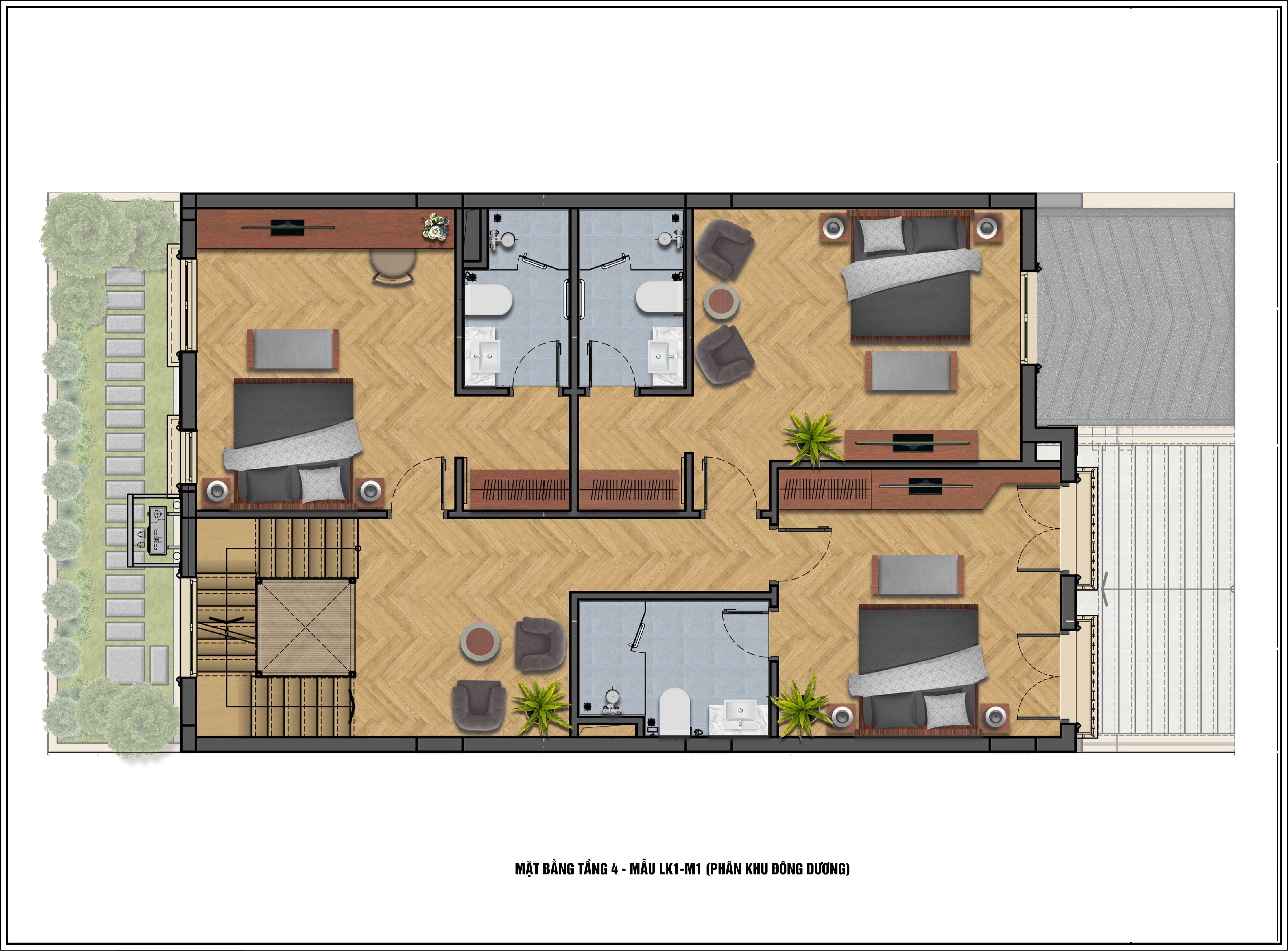 - Diện tích tầng 4: 132,14m2