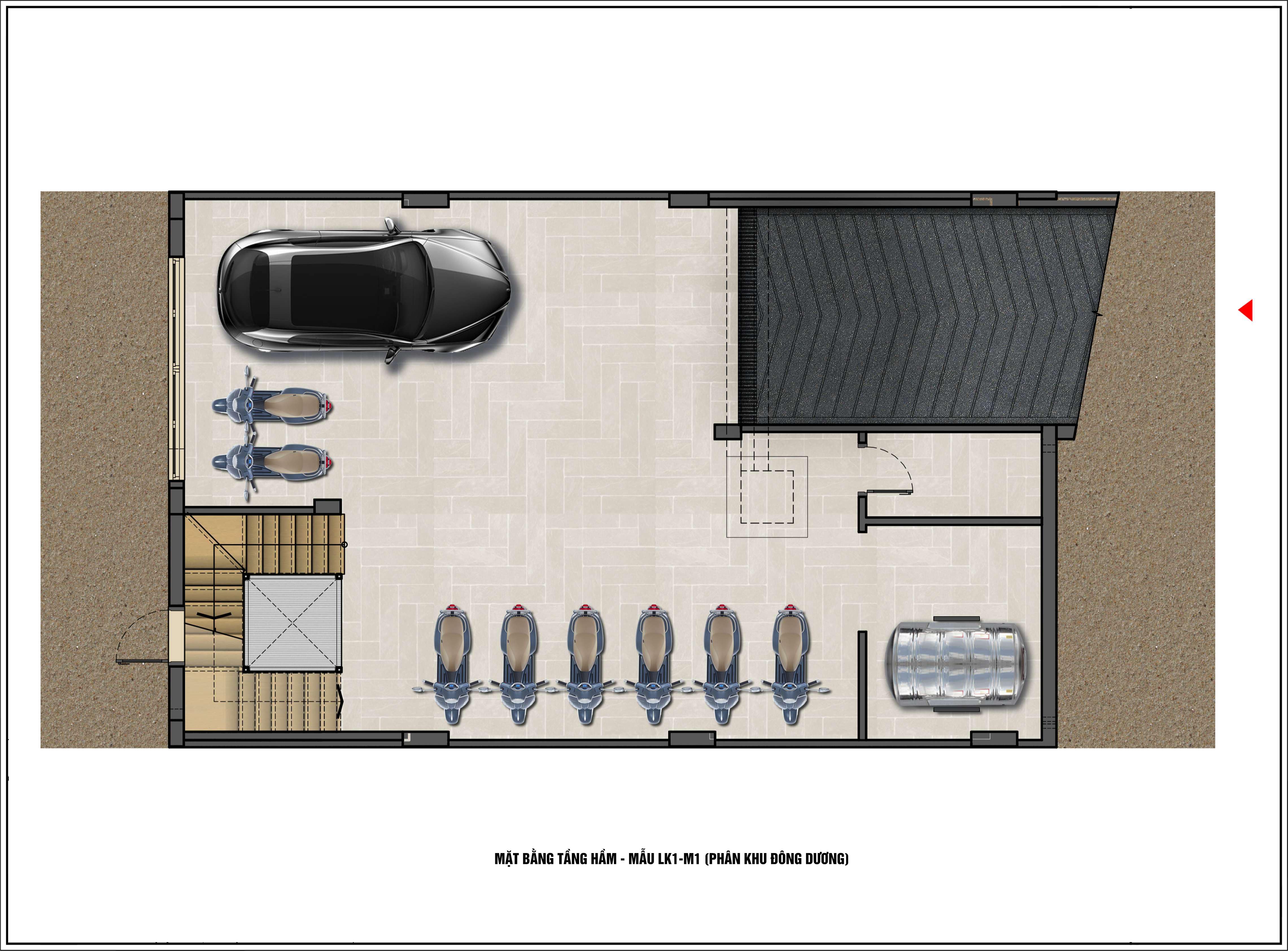 - Diện tích tầng hầm: 133,64m2