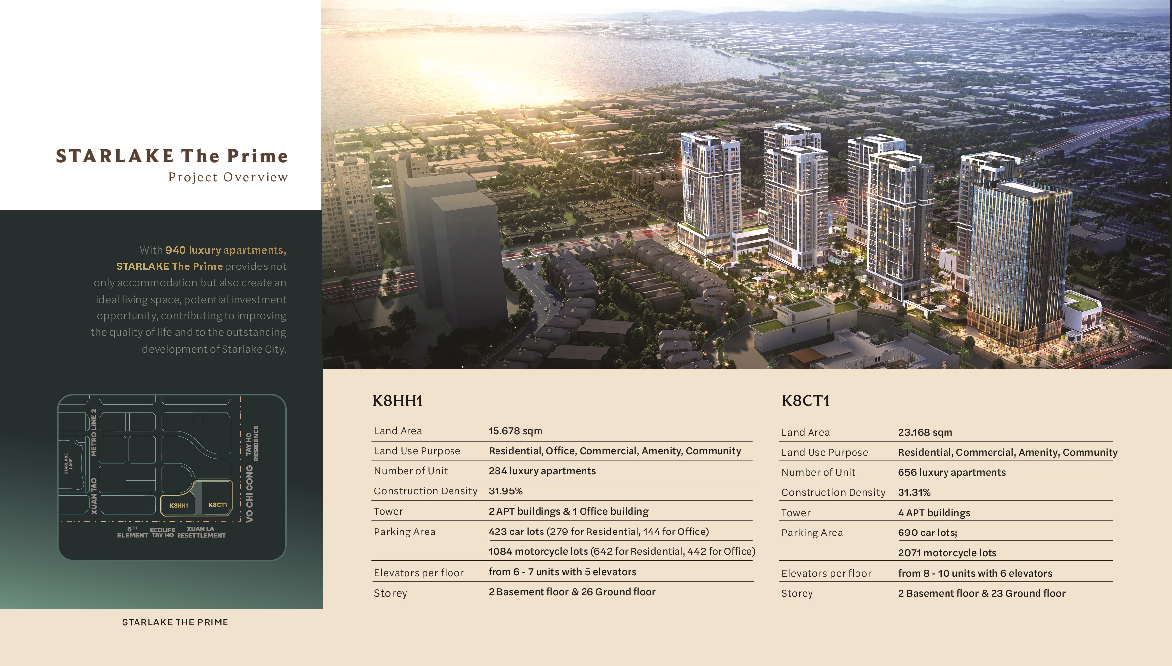 Cụm dự án K8 Starlake gồm 2 dự án Chung cư The Prime – Chung cư K8HH1 Starlake: có 03 tòa nhà, cụm K8CT1 gồm 04 tòa cao tầng.