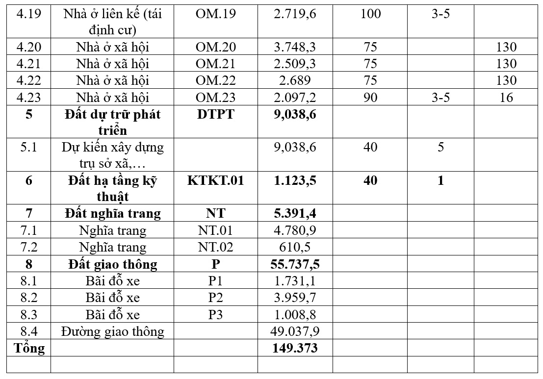Chỉ tiêu sử dụng đất (phần 14,93 ha)
