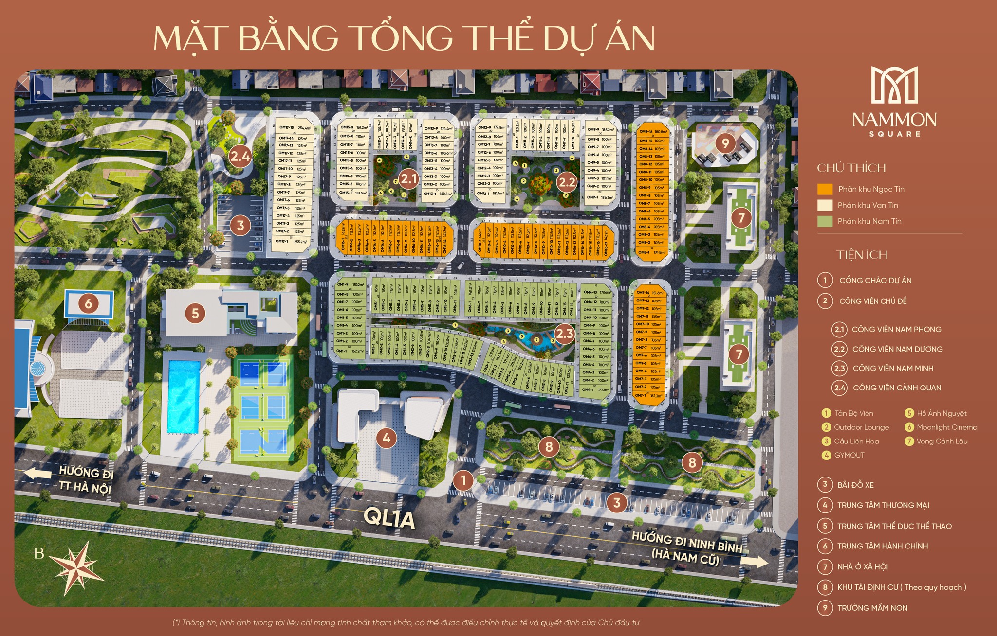 - Danh sách các phân khu trong khu dự án Nammon Square Thường Tín: Tổng số lô: 198 lô