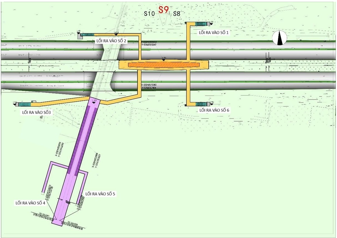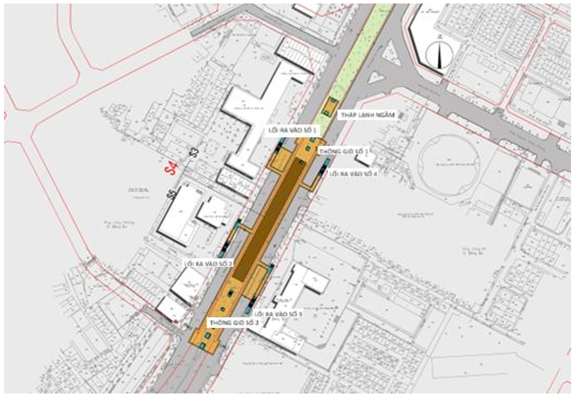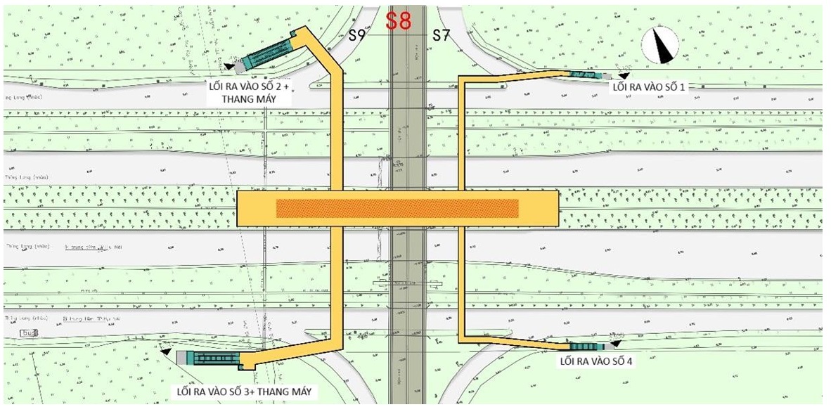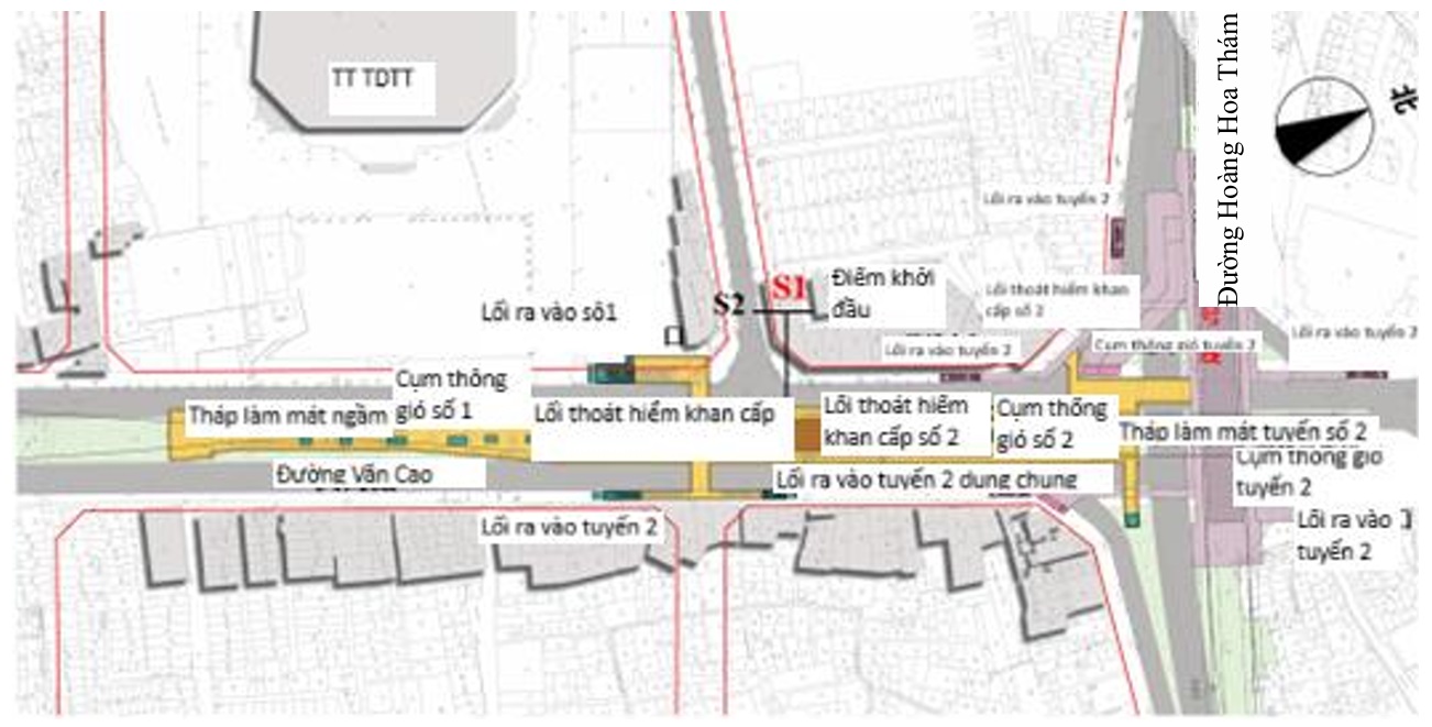 Tim tuyến chính gồm: tim tuyến trái đi qua các điểm từ T1 đến T92; tim tuyến phải đi qua các điểm từ P1 đến P86. Đối với tim nhánh vào Depot 1: tim nhánh đấu nối từ ga An Khánh 2 (S11) đi qua các điểm DP1 đến DP11; nhánh đấu nối từ ga Song Phương (S12) đi qua các điểm từ DP12 đến DP19. Tim nhánh vào Depot số 2: đi qua các điểm từ DP20 đến DP23.