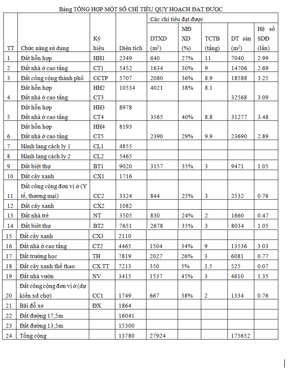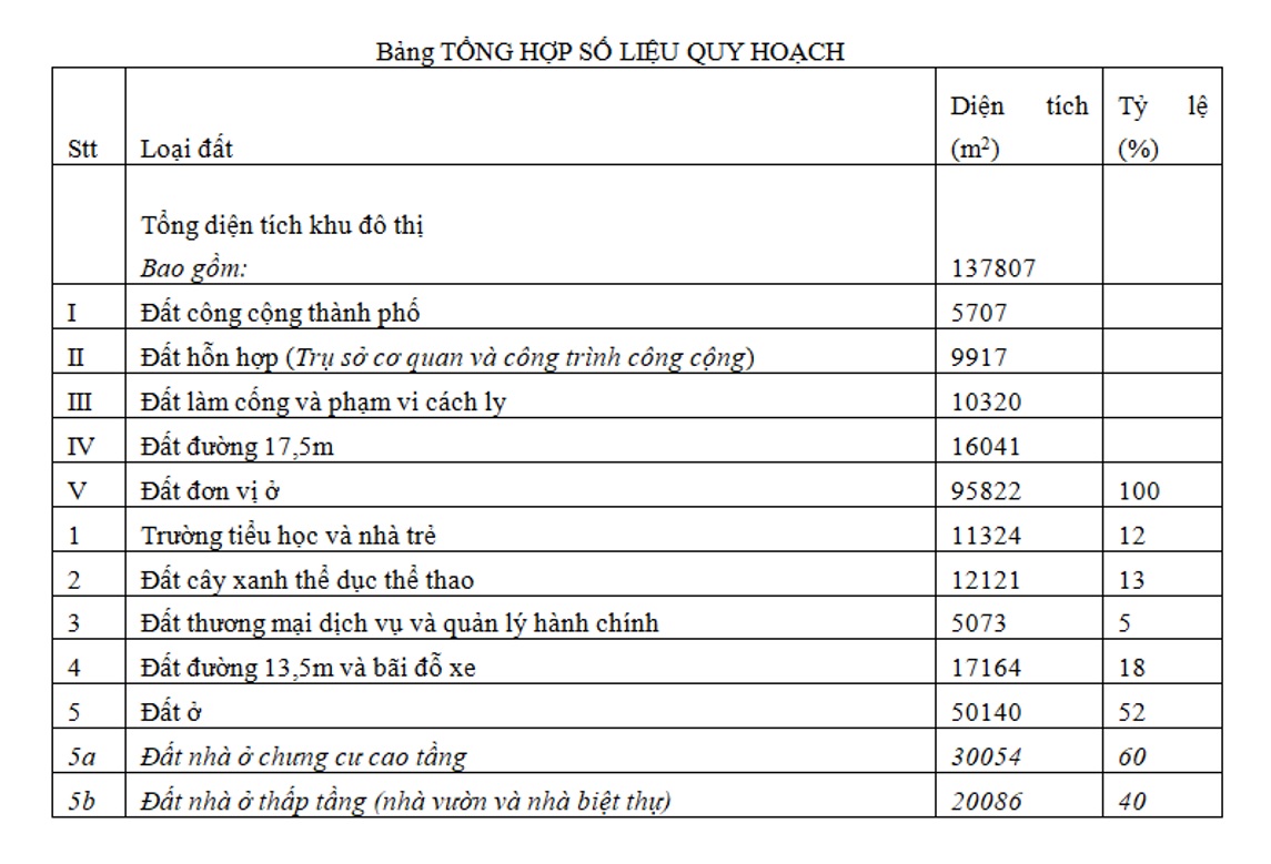 + Tổng diện tích đất quy hoạch:137807 m2