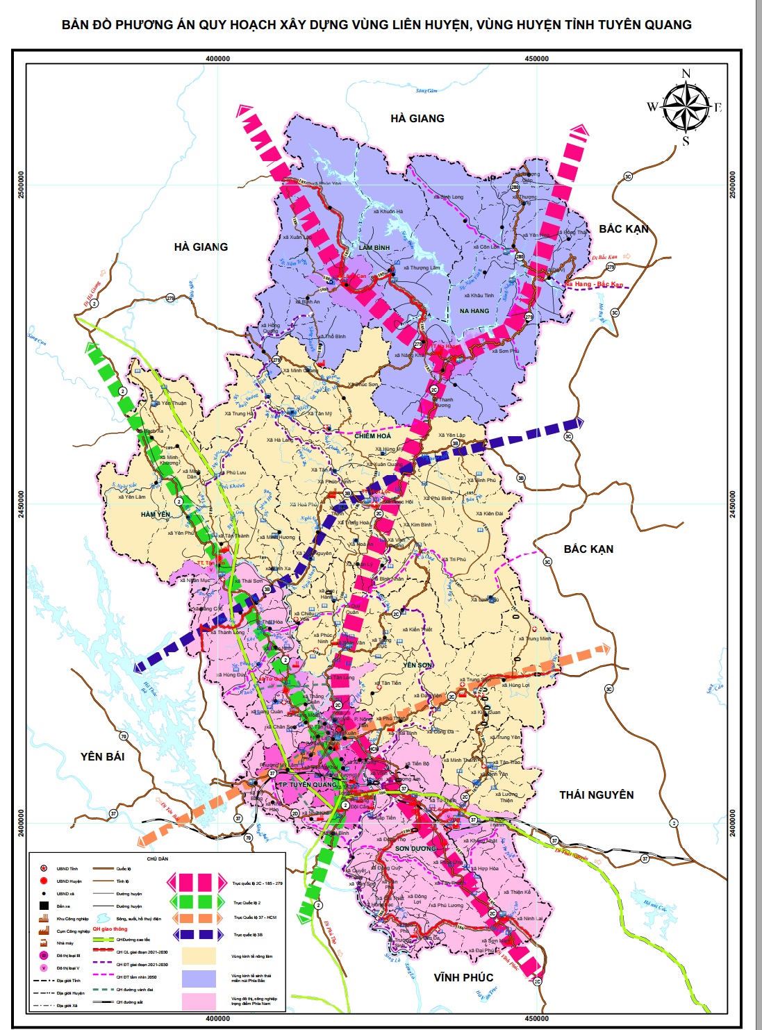 + Vùng liên huyện phía Bắc tỉnh gồm Chiêm Hóa, Hàm Yên, Na Hang, Lâm Bình. Định hướng phát triển: nông nghiệp chất lượng cao, lâm nghiệp, dịch vụ, du lịch và công nghiệp chế biến nông sản.