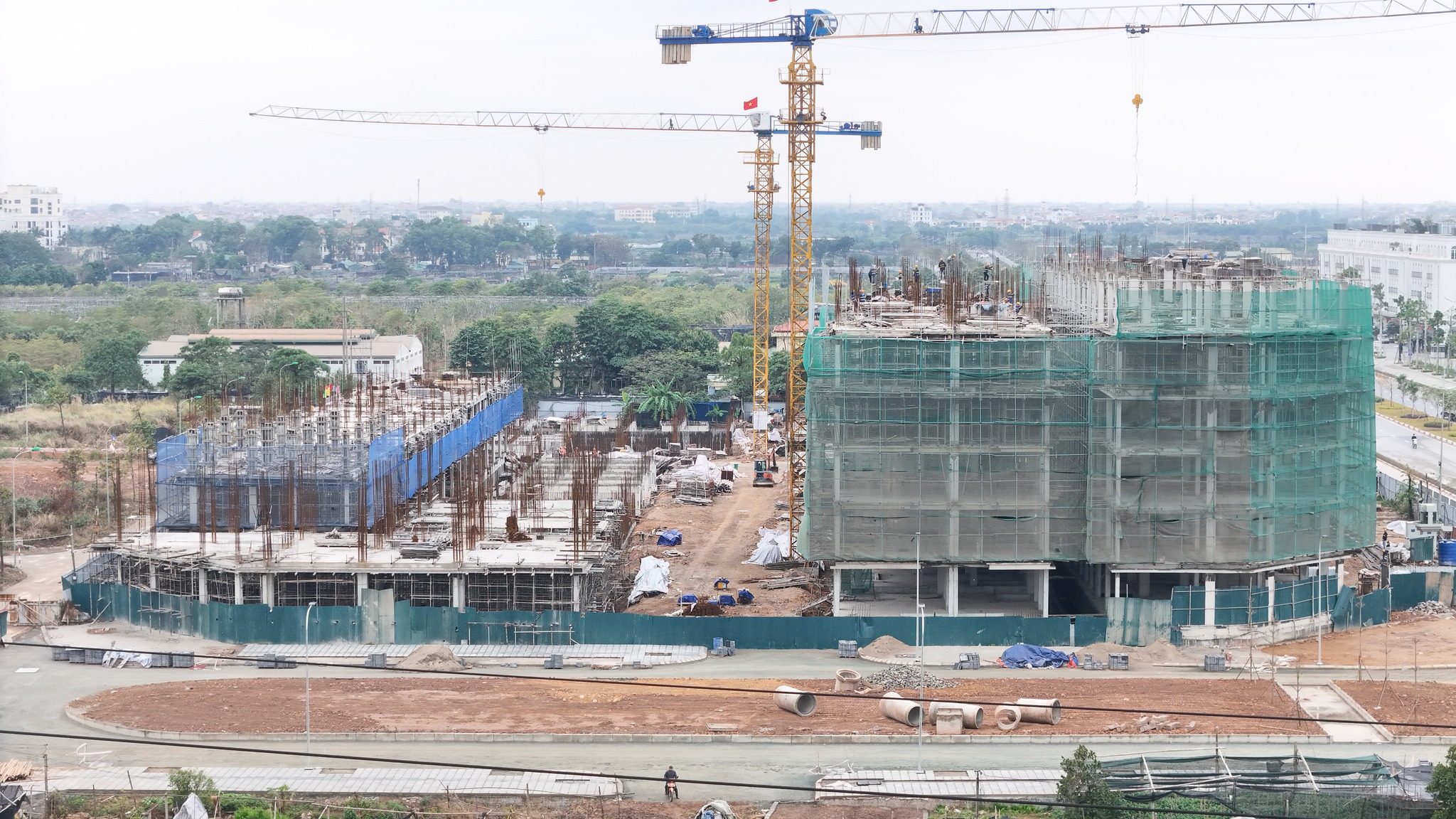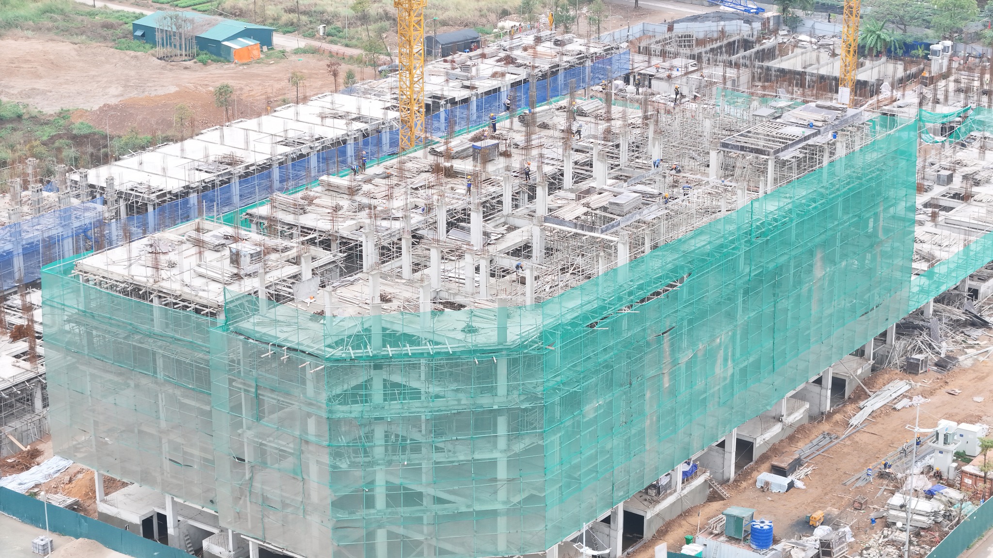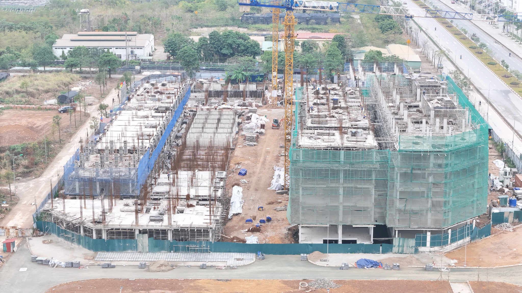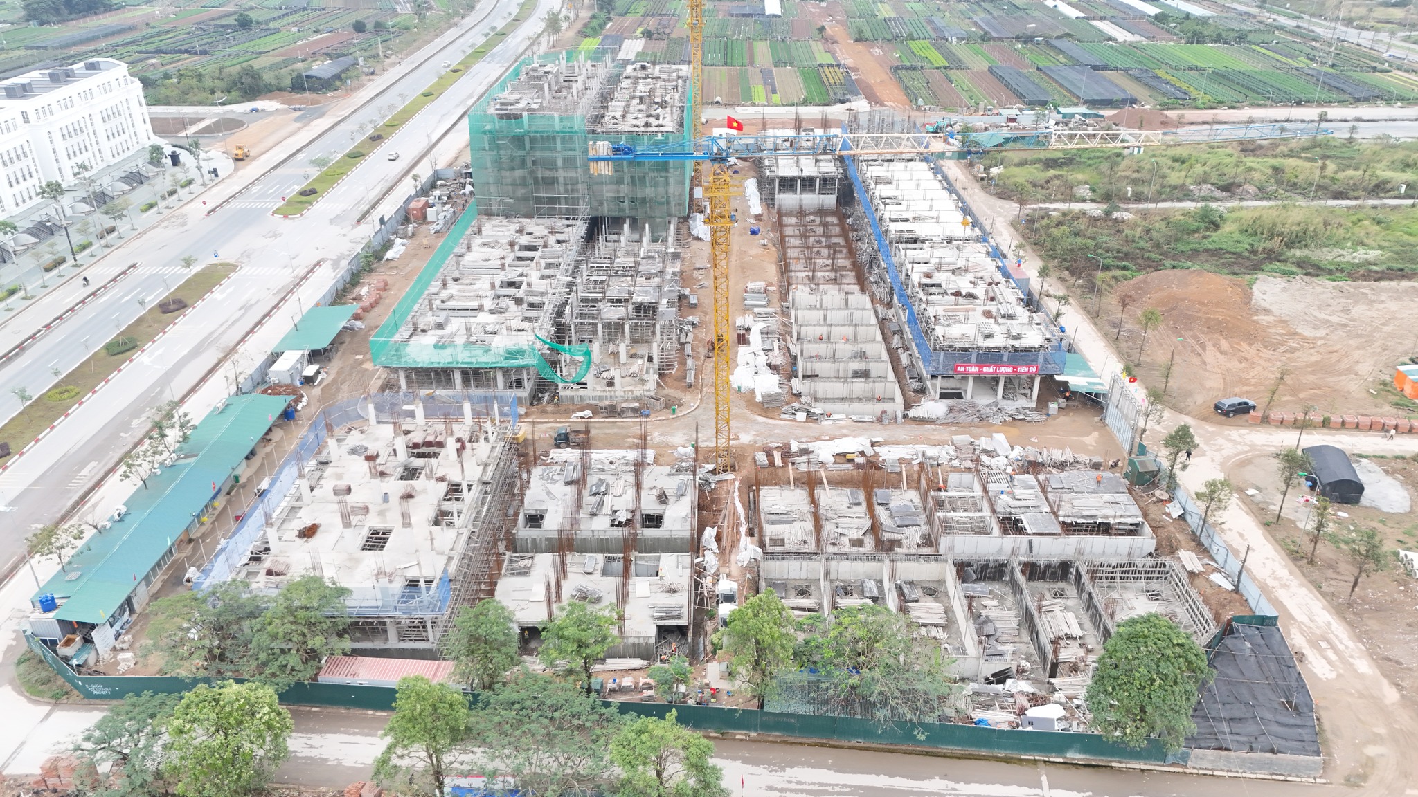 Tiến độ dự án không đồng đều giữa các phân khu và không đồng đều giữa các mặt, các mặt sản phẩm quay ra mặt đường đã xây được khối lượng công việc lớn, trong khi mặt trong nhiều căn vẫn đang làm hầm.