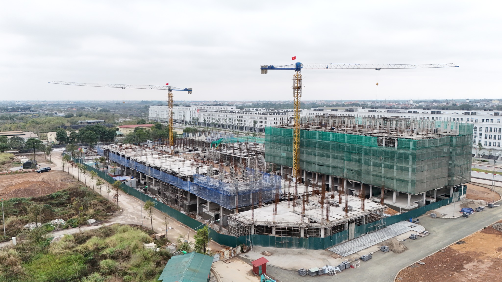 + Khu LK3 đang thi công tầng 2 mặt đường Tây Thăng Long, một số căn mặt đường 13m đang thi công tầng 1 lên tầng 2.