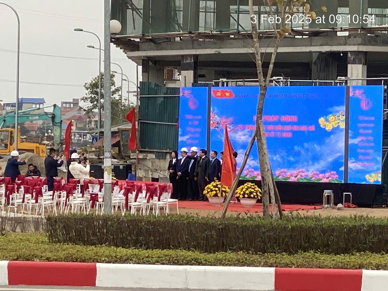Công nhân nghỉ tết đã quay trở lại thực hiện công việc ngay từ những ngày đầu năm, đã được lãnh đạo UBND quận Bắc Từ Liêm, lãnh đạo phường Tây Tựu tới thực hiện Tết trồng cây xuân Ất Tỵ 2025 trên đường 46m, mừng tuổi công nhân tại dự án.