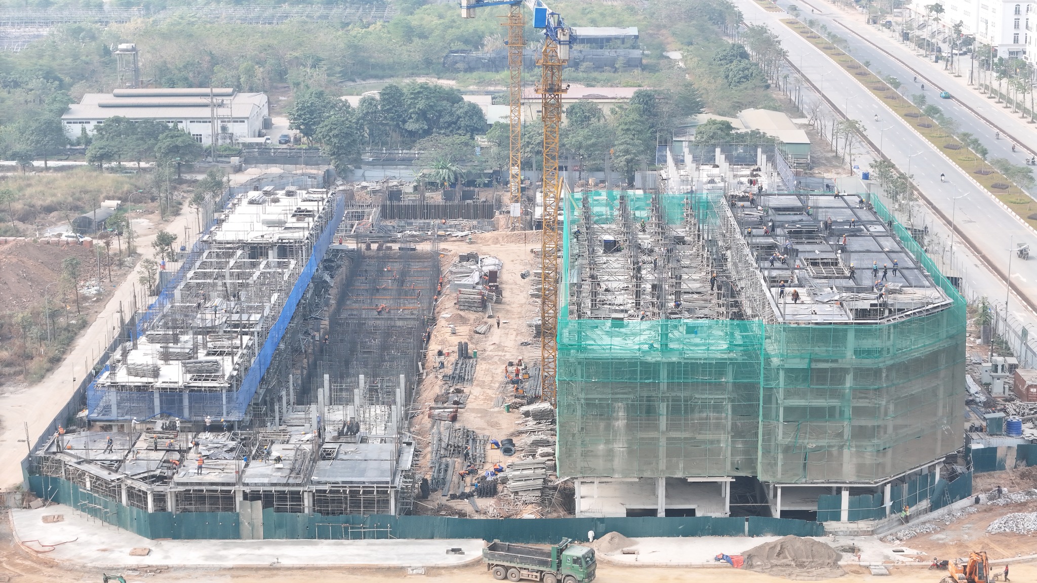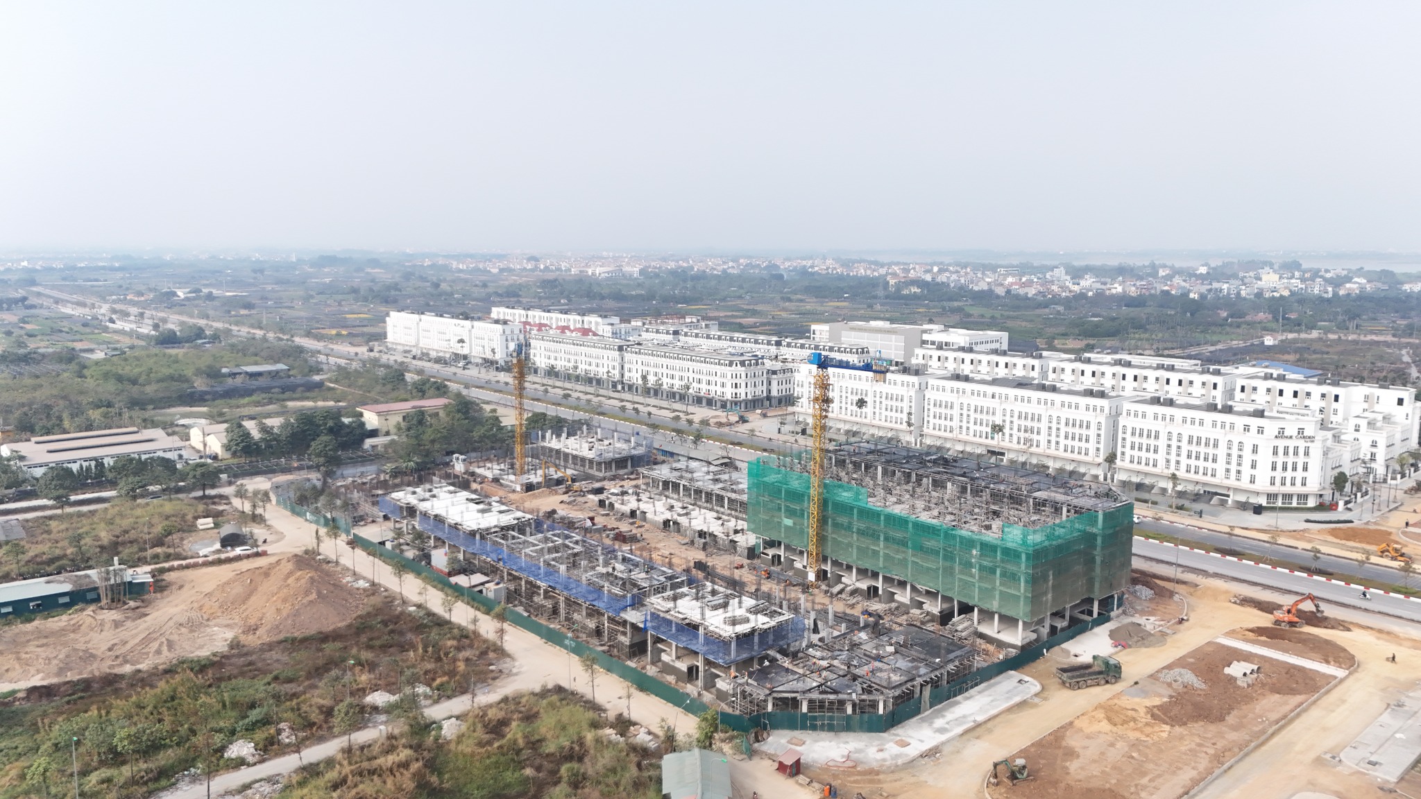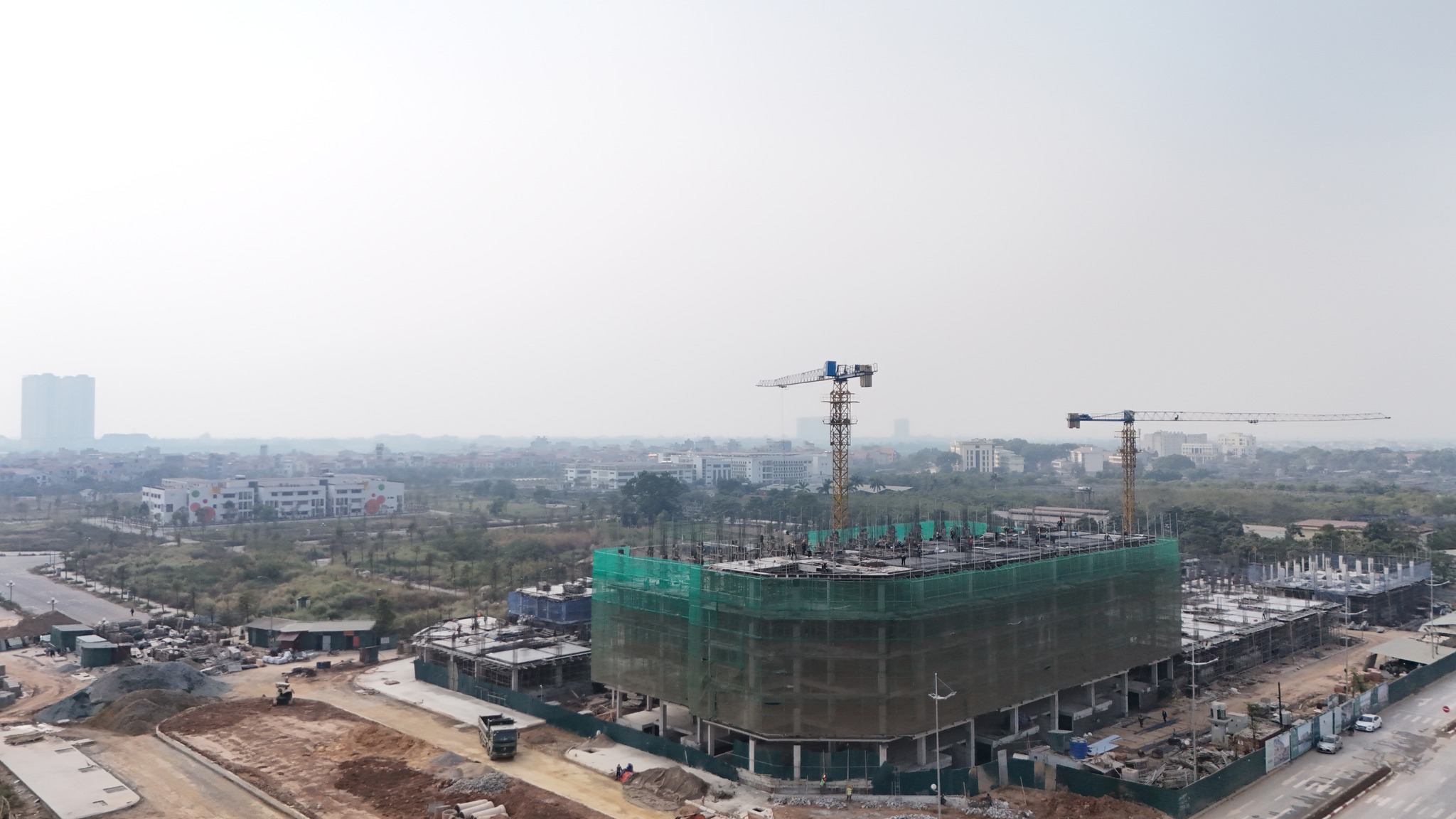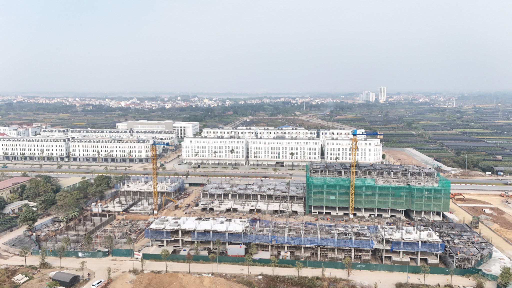 + Khu LK3 đang thi công tầng 2 mặt đường Tây Thăng Long, mặt đường 13m đang thi công tầng 1.