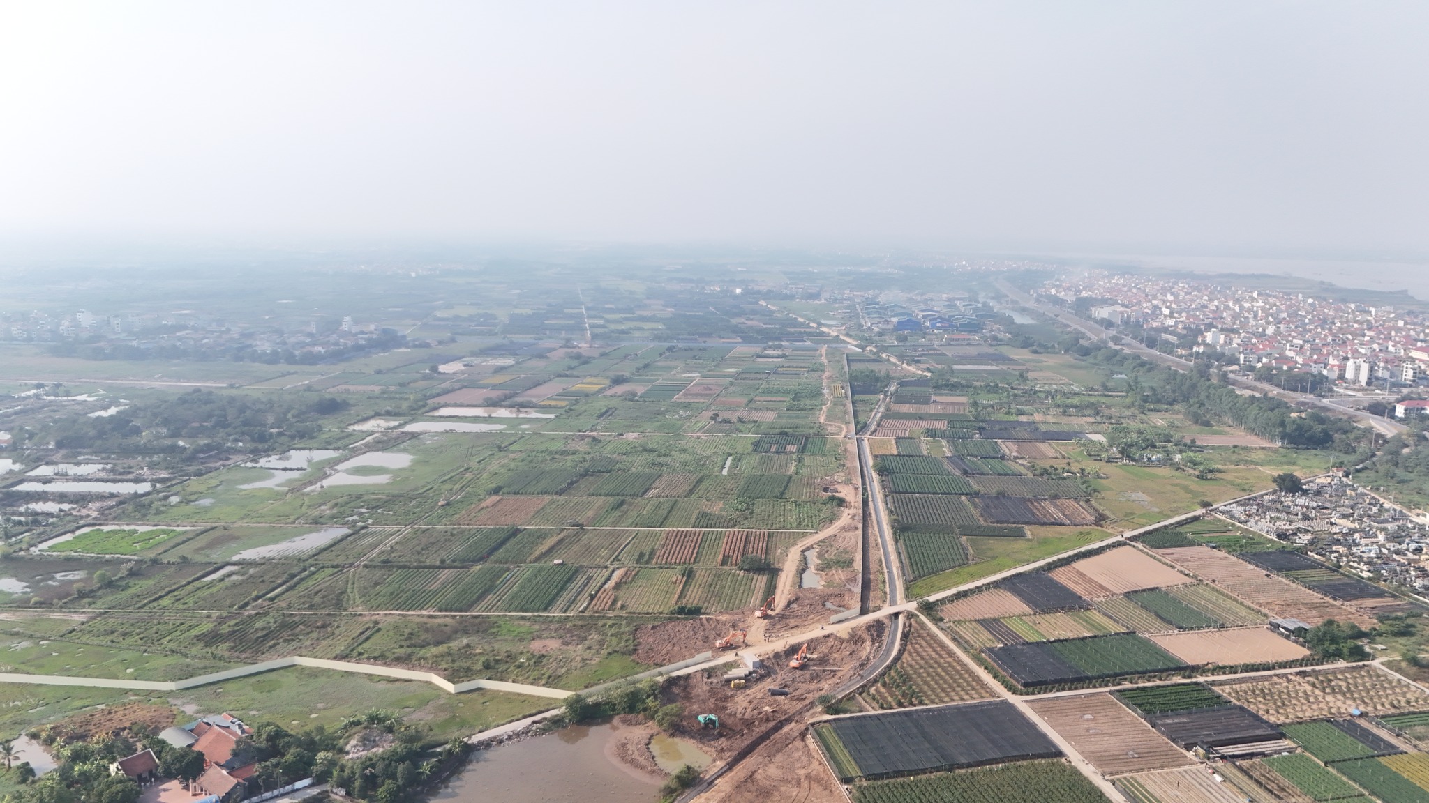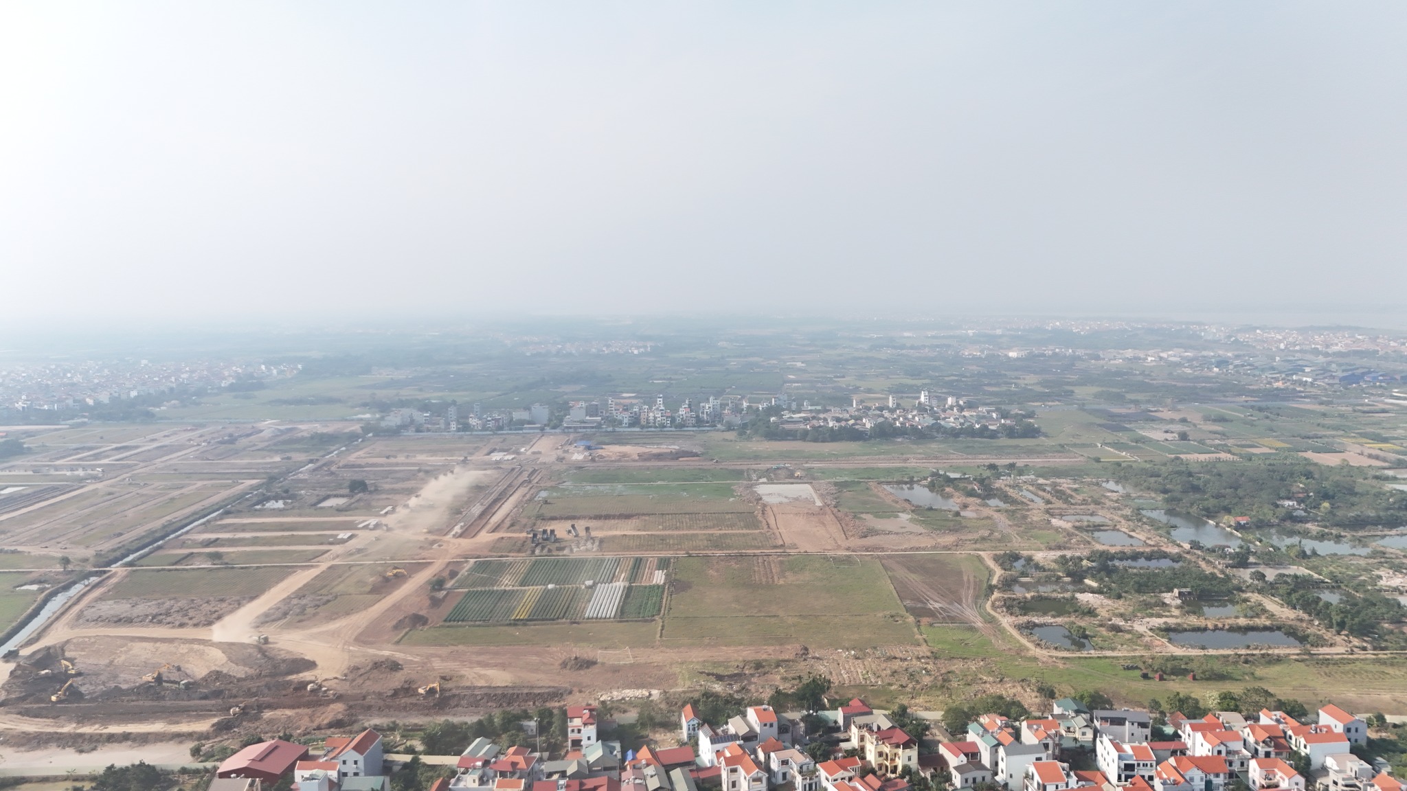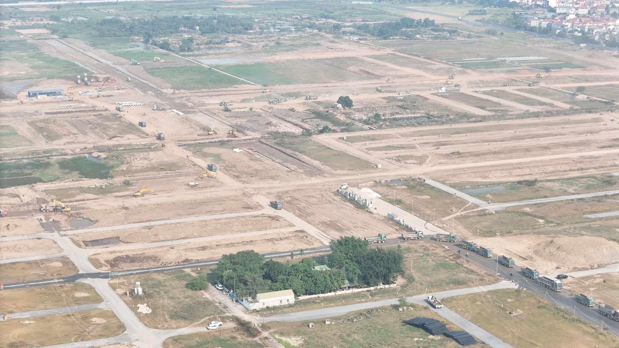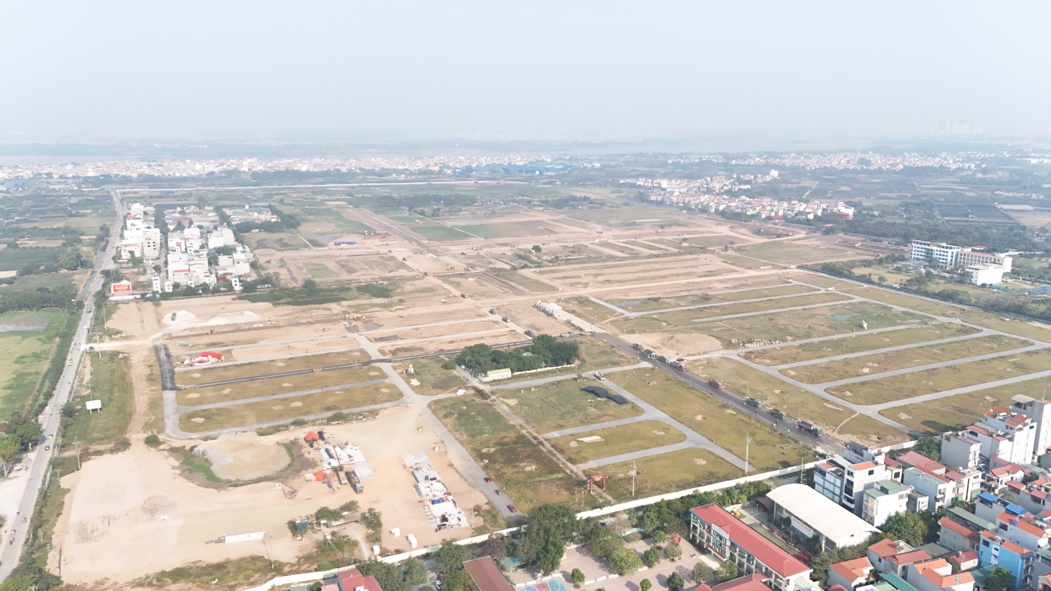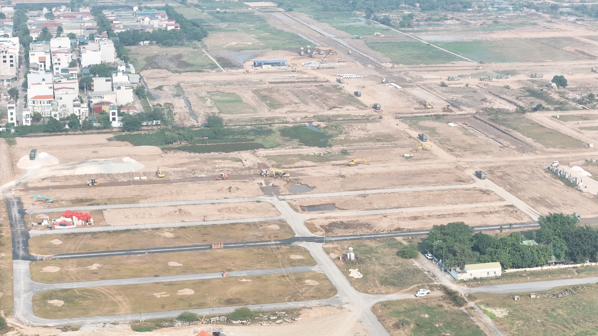 Khu vực bên trong dự án đang được san lấp, làm hạ tầng kỹ thuật toàn khu đô thị