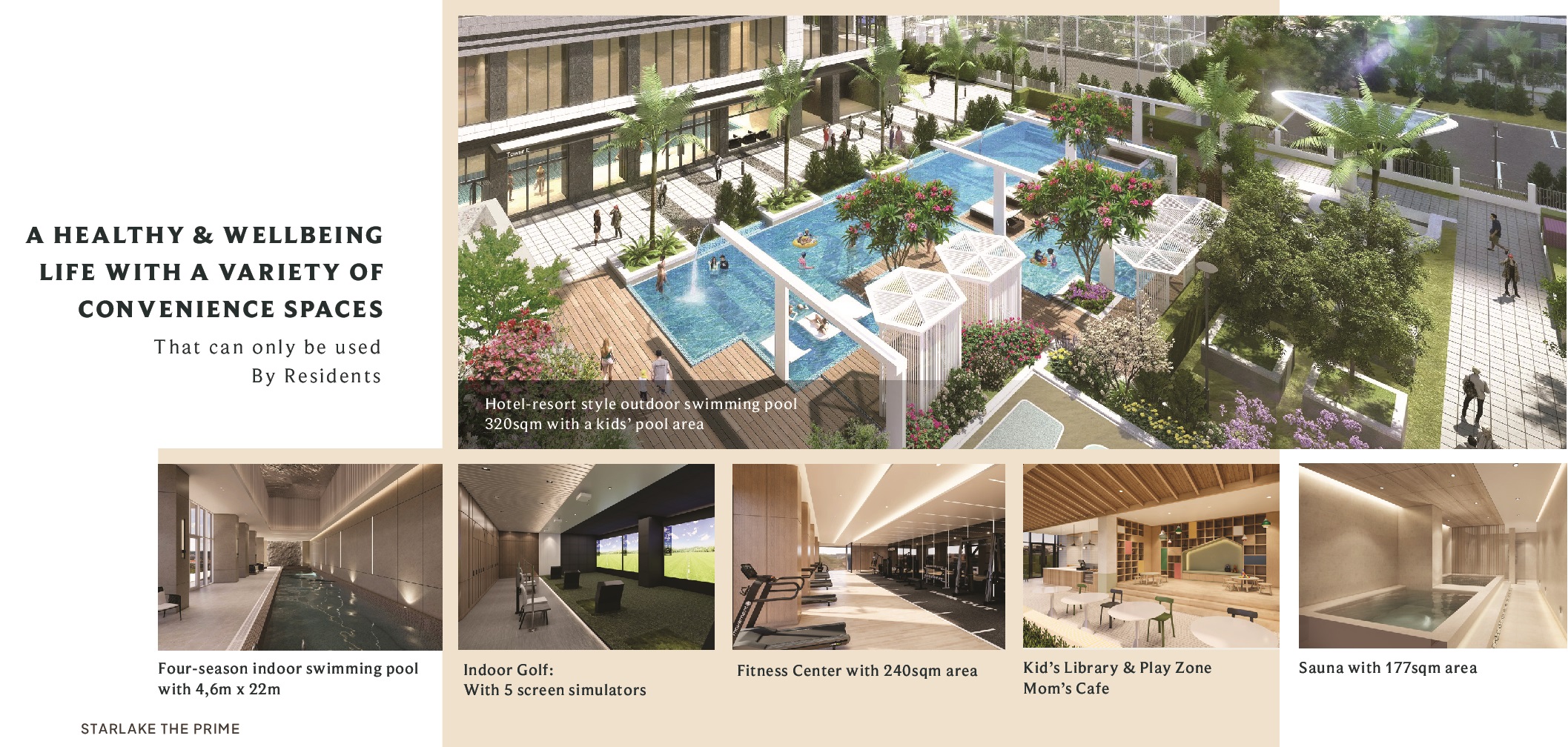 Chung cư The Prime Starlake có tiện ích riêng cho cư dân tòa nhà như bể bơi 4 mùa có kích thước 4,6mx22m; bể bơi ngoài trời dành cho trẻ em rộng 320m2, sân golf trong nhà, khu thể dục, khu thư viện và vui chơi trẻ con có bố trí quầy cà phê dành cho phụ huynh, phòng xông hơi 177m2, chung cư còn áp dụng quản lý theo công nghệ tiên tiến nhất như cảm biến an ninh, quản lý khách truy cập từ xa, kiểm soát tạp trung, hệ thống đỗ xe thông minh nhanh,….