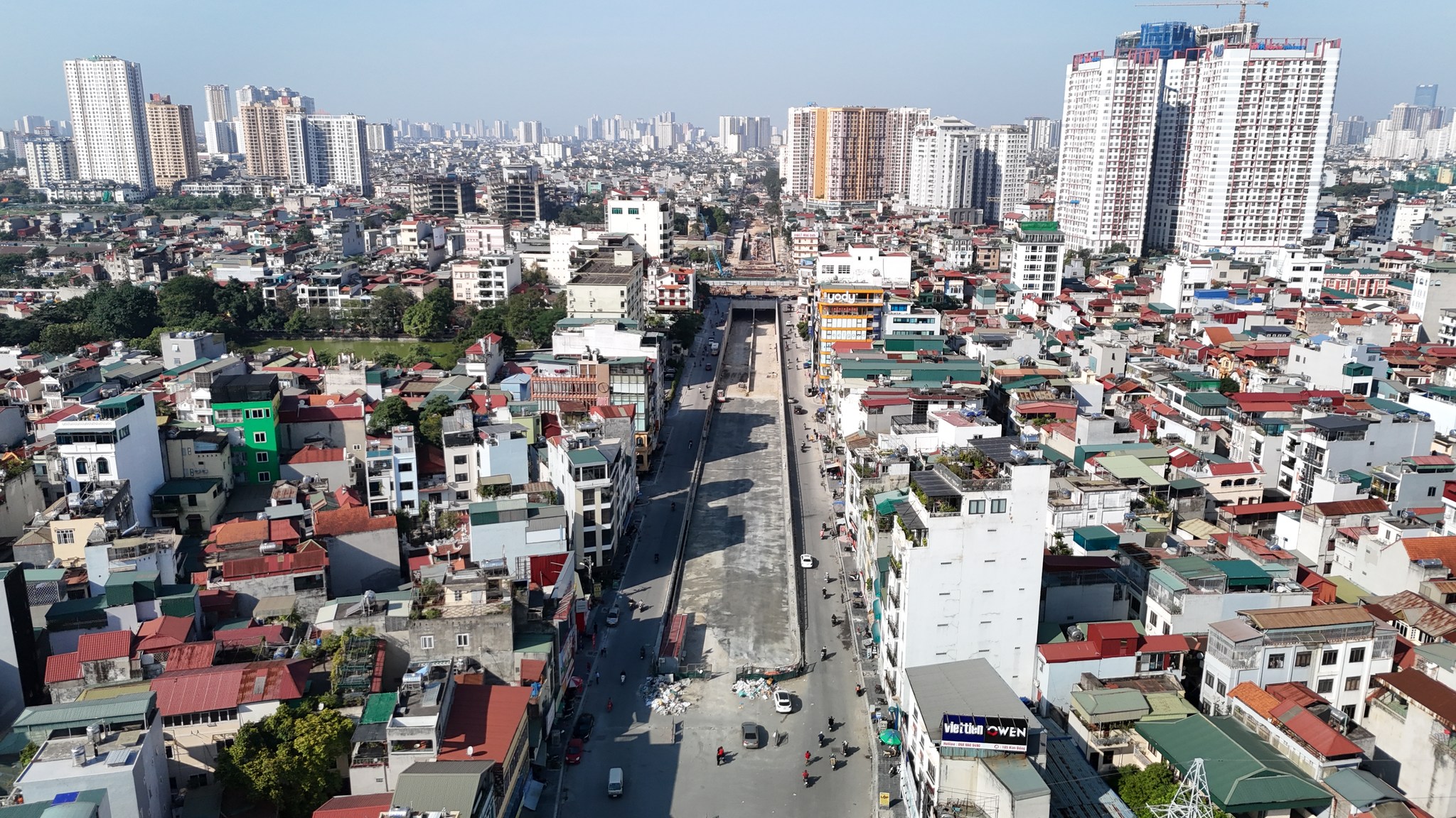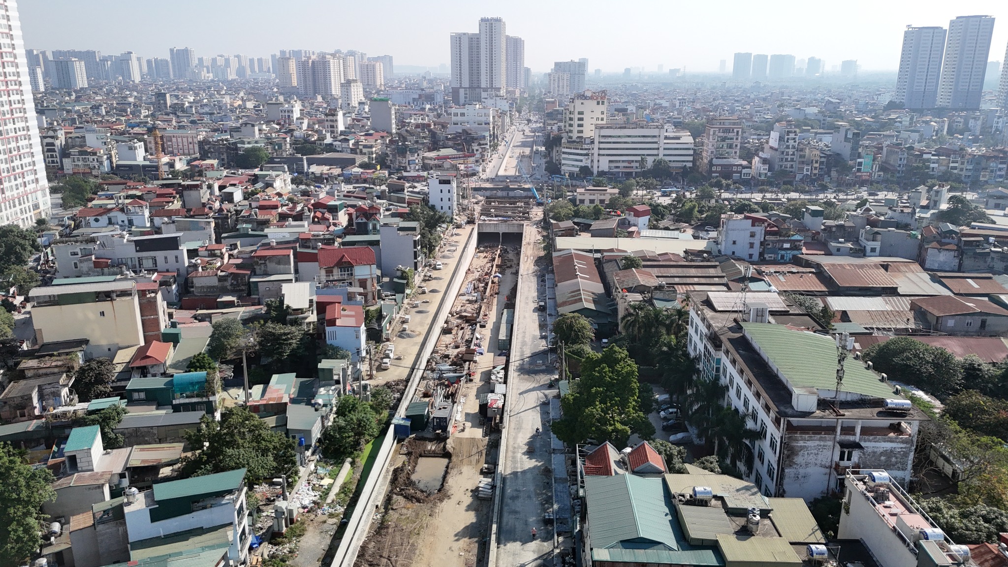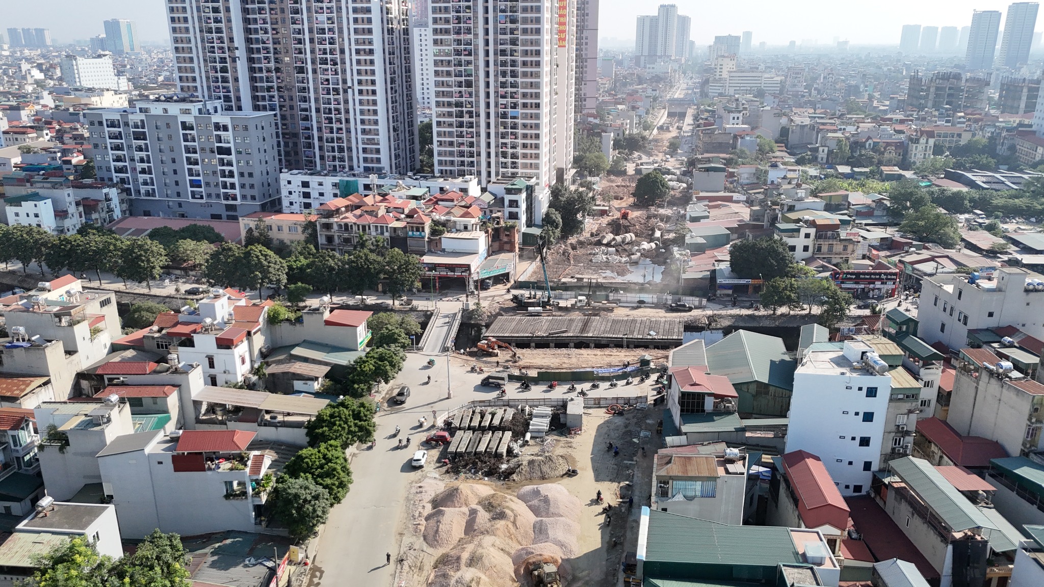 - Toàn bộ dự án đang thành hình, hạ tầng kỹ thuật đã cơ bản hoàn thành, phần hầm hở công việc đã gọn, đường 2 bên đang làm bó lát vỉa hè.