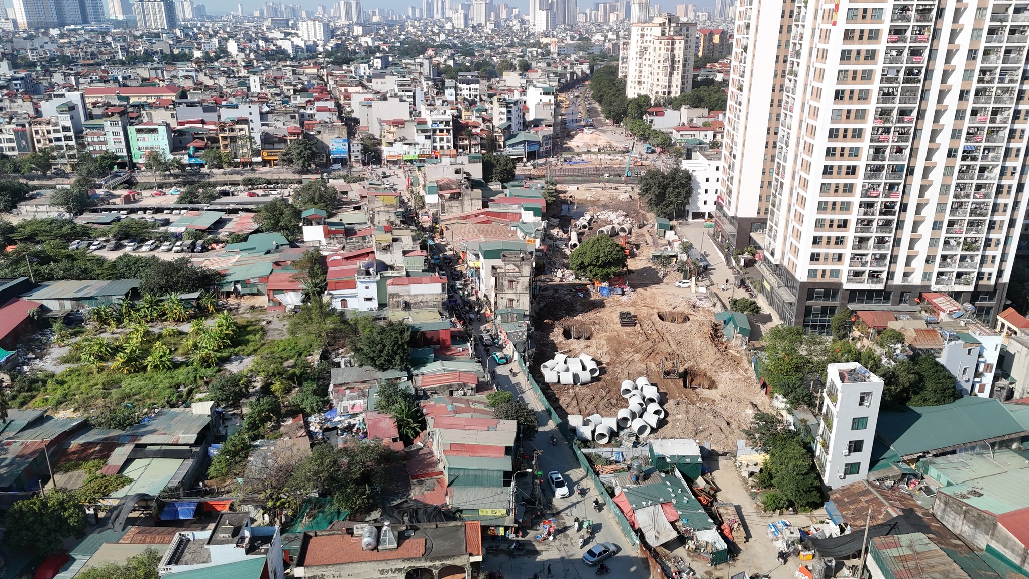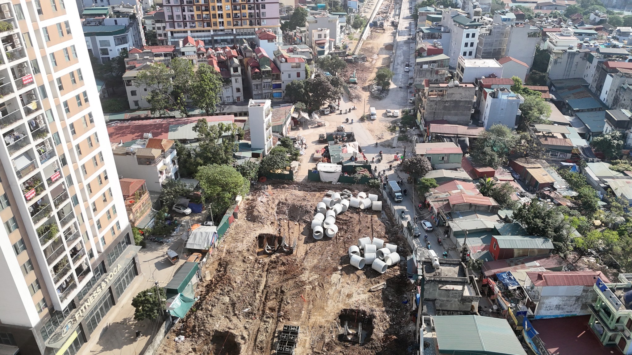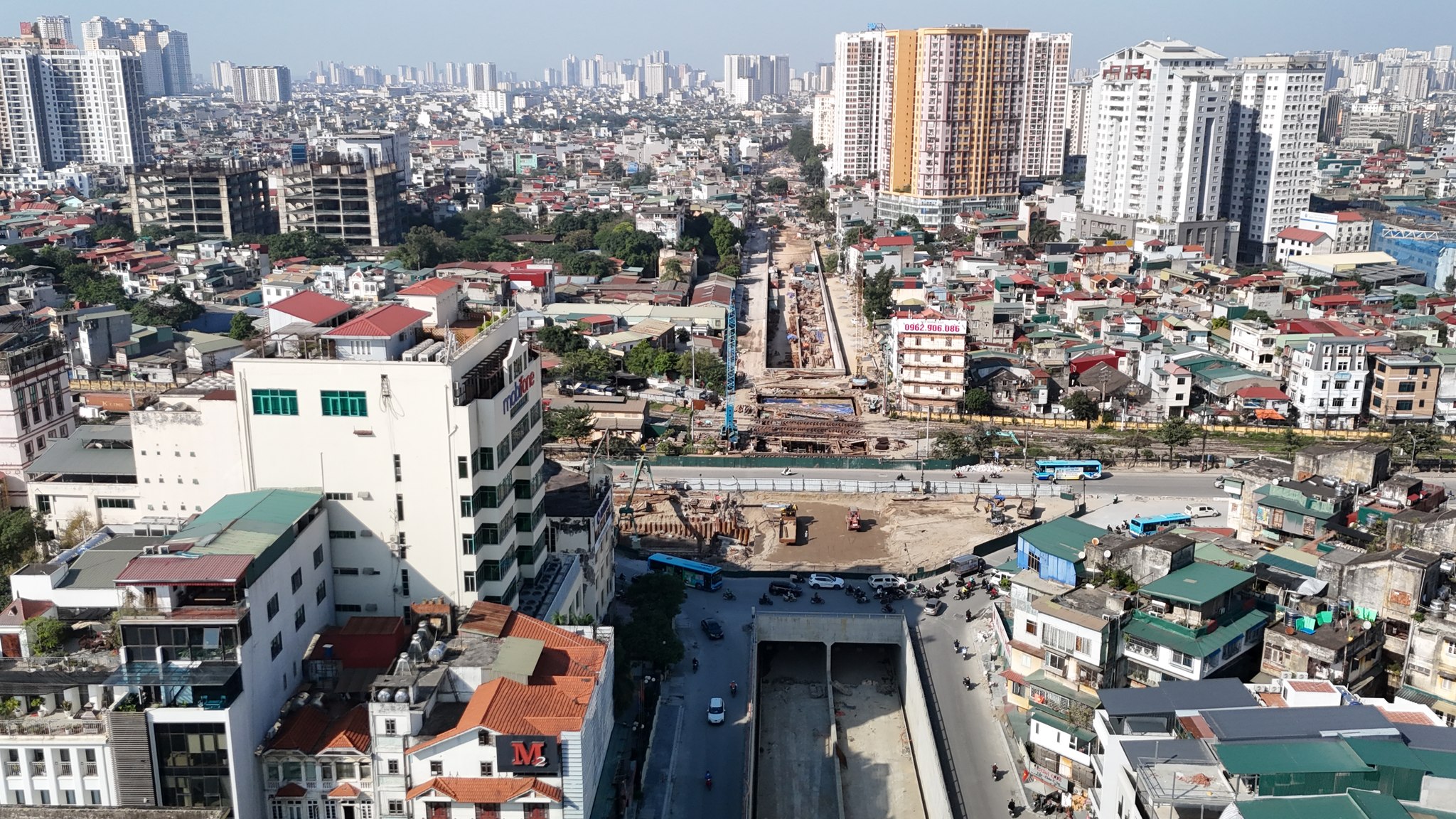 - Toàn bộ dự án đang thành hình, hạ tầng kỹ thuật đã cơ bản hoàn thành, phần hầm hở công việc đã gọn, đường 2 bên đang làm bó lát vỉa hè.
