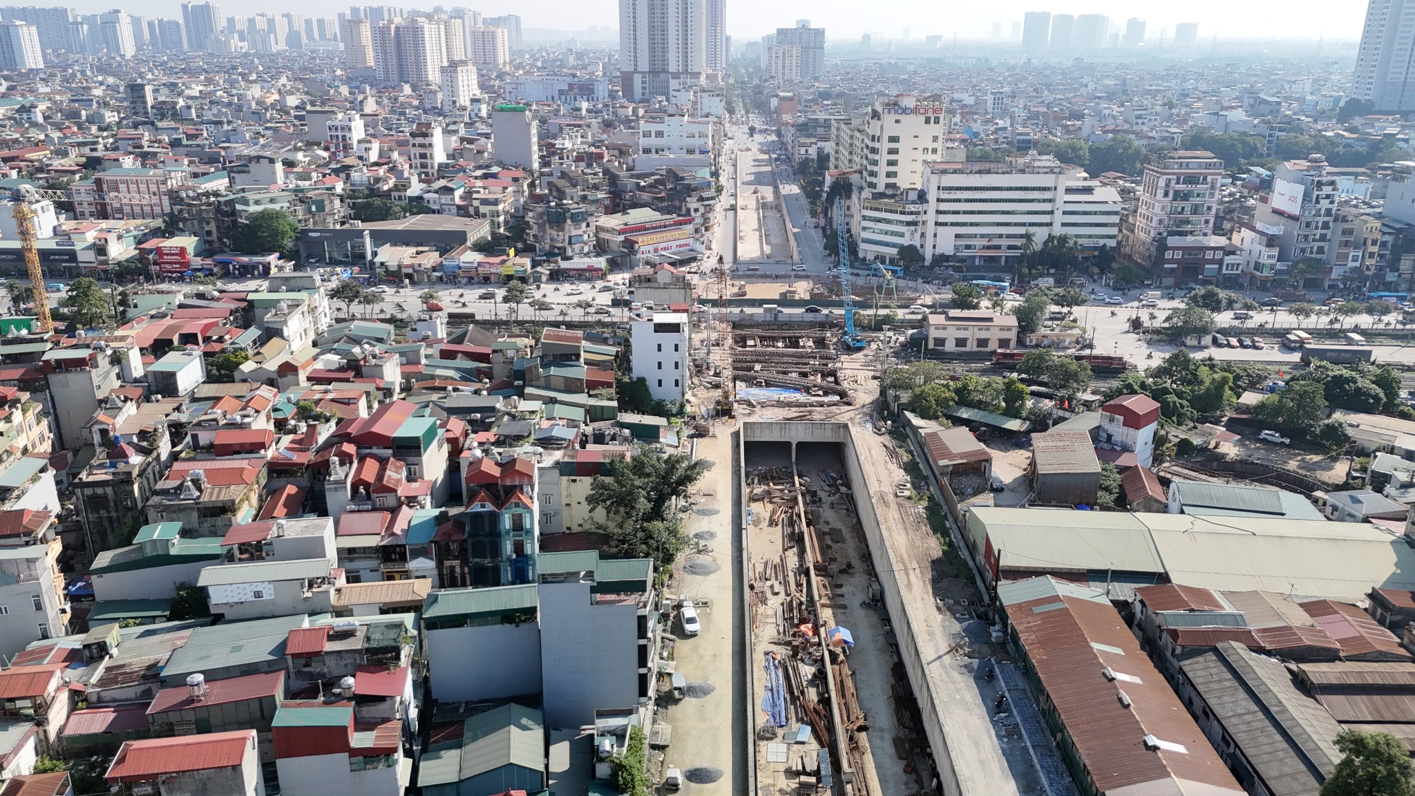 Toàn cảnh hầm chui từ đường Giải Phóng hướng qua ga Giáp Bát