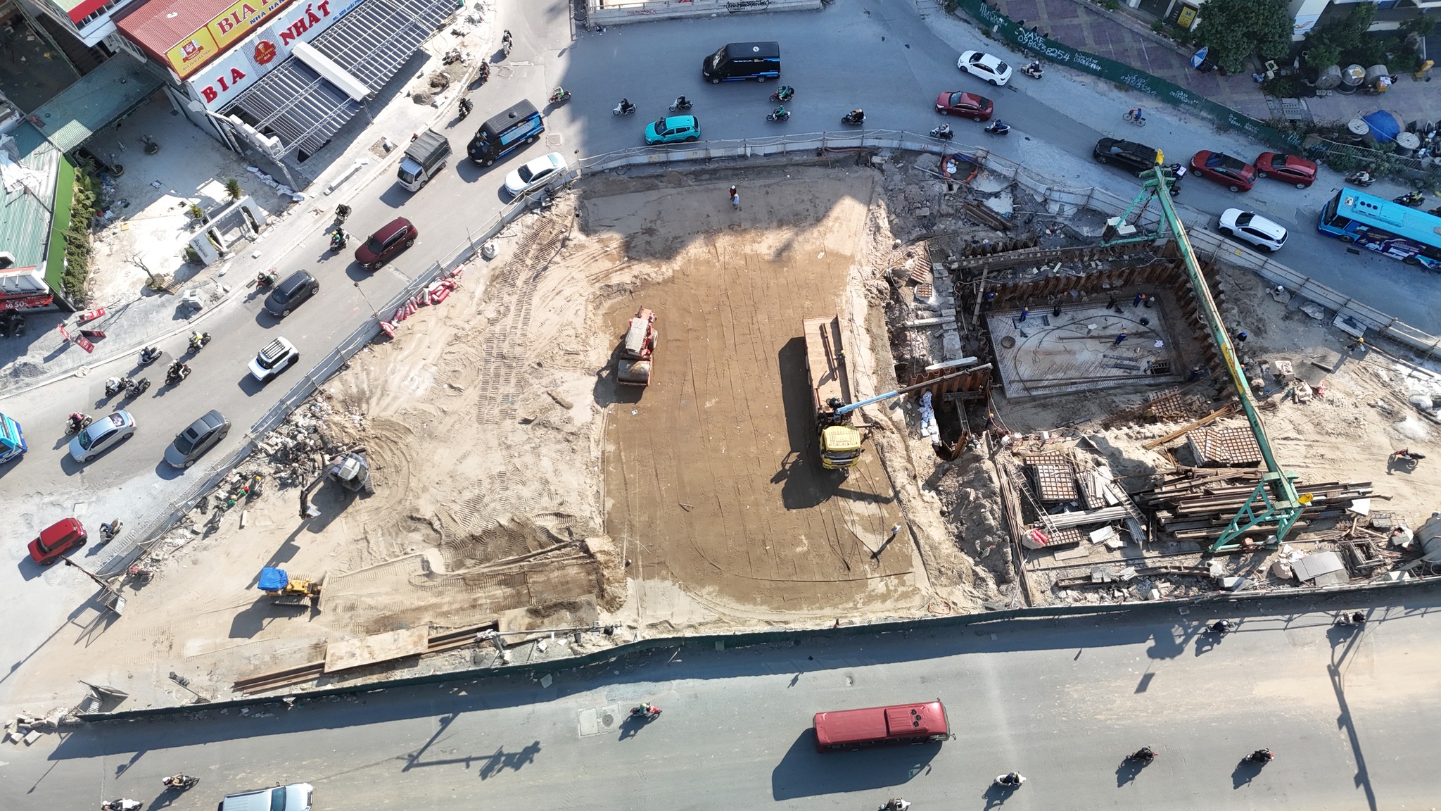 - Phần thi công được nhiều nhất là phần hầm trên đường Kim Đồng, máy móc đã rút bớt, hình hành dự án đang dần lộ diện.