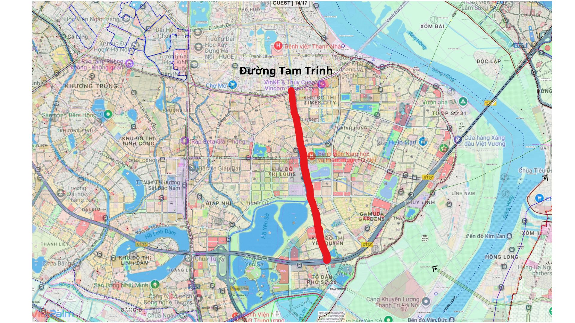 Đường Tam Trinh: chiều dài 3.557m, điểm đầu tại nút giao đường Minh Khai – đường Vành đai 2, điểm cuối tại nút giao với đường Vành đai 3.